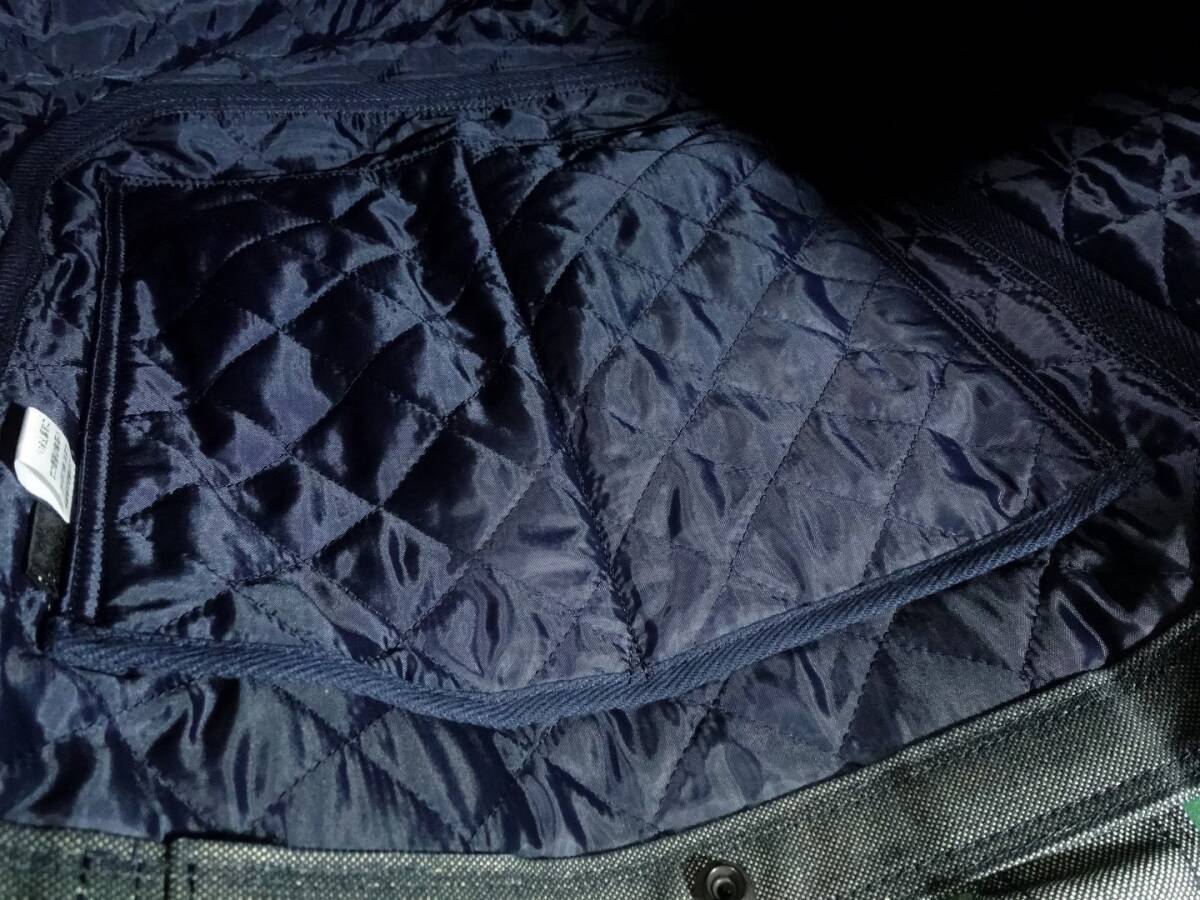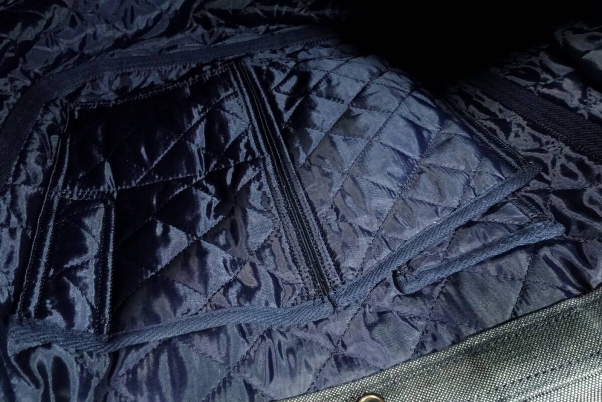 内面両サイドに折りたたみ傘が入る程度の縦長ポケット1つずつ。