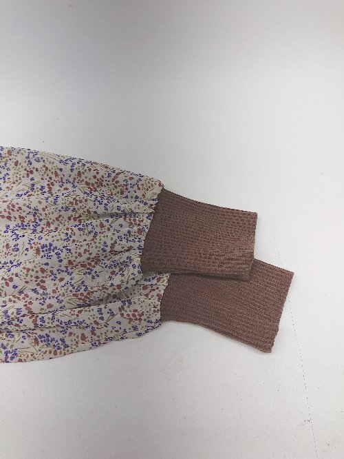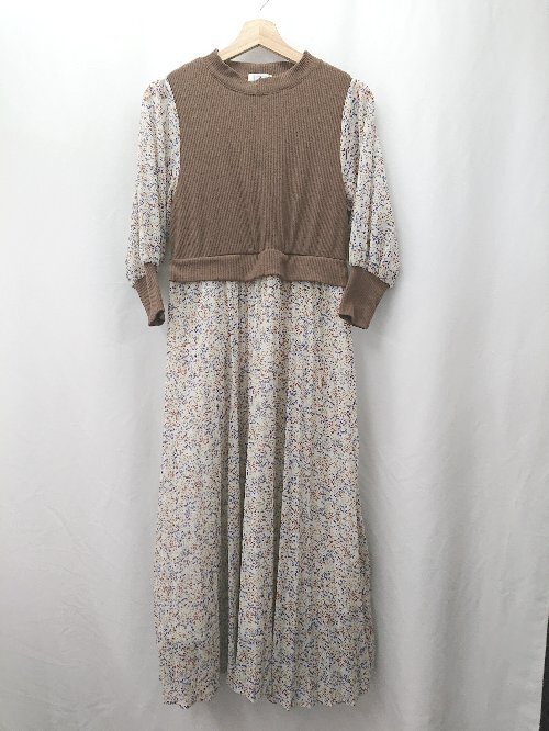 ◇ ⊂ ABITOKYO アビトーキョー 花柄 リブニット 長袖 ロング ワンピース サイズF ブラウン ブルー系 レディース E