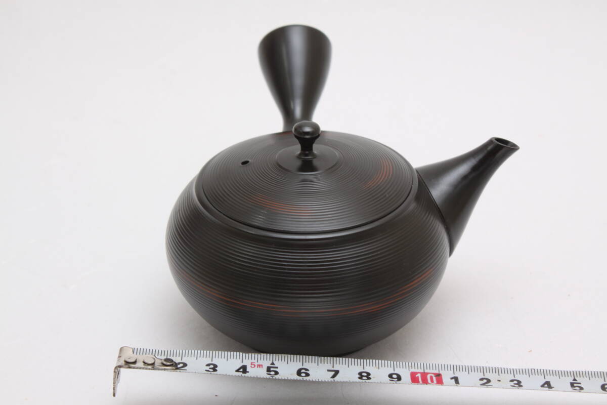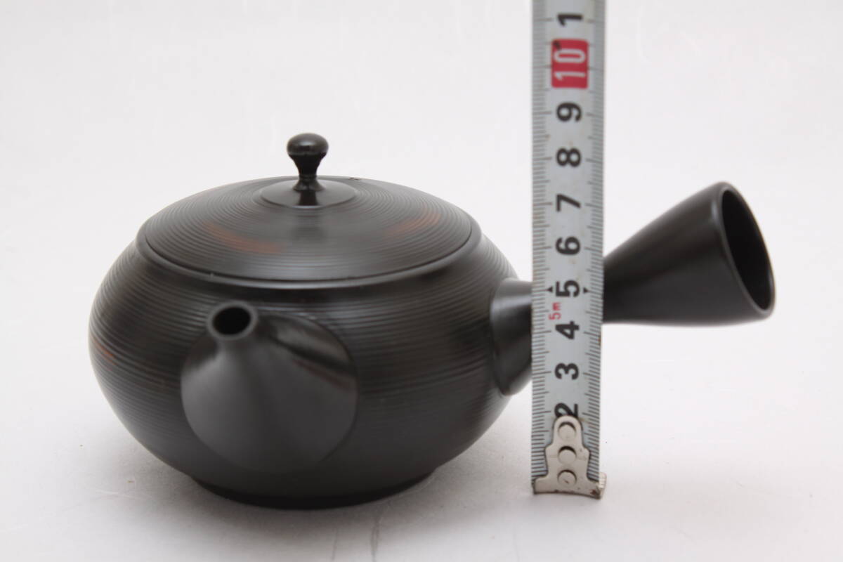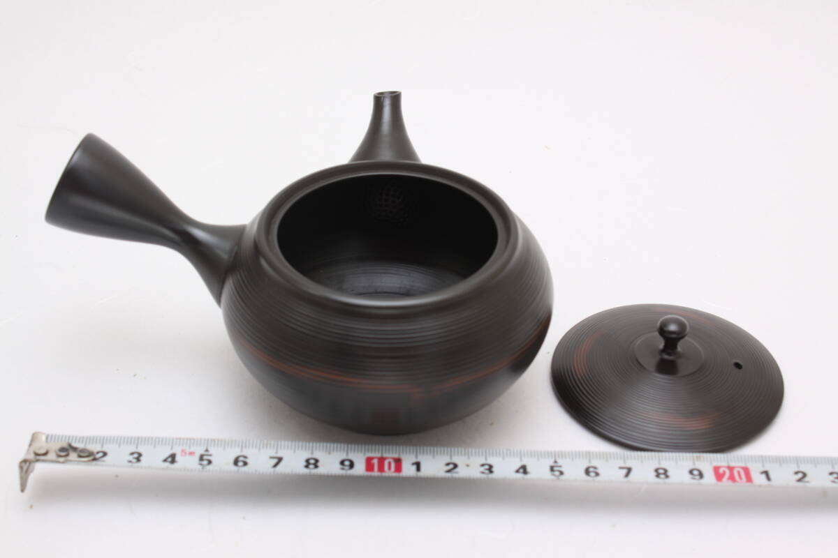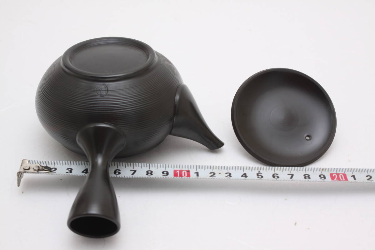 1052 新品未使用 常滑焼 人気作家 昭龍 梅原昭二 窯変 筋引 黒泥 還元 192g 横手 急須 茶注 煎茶道具