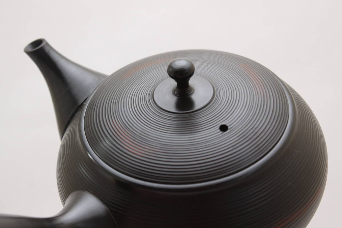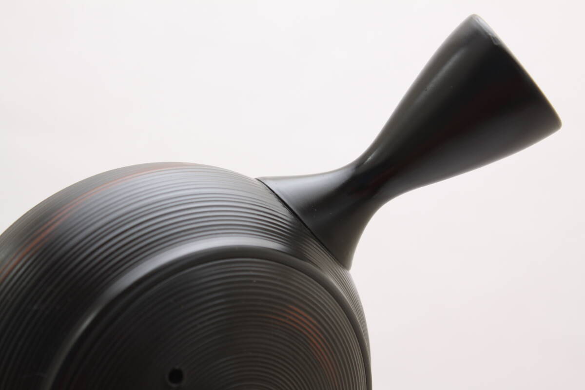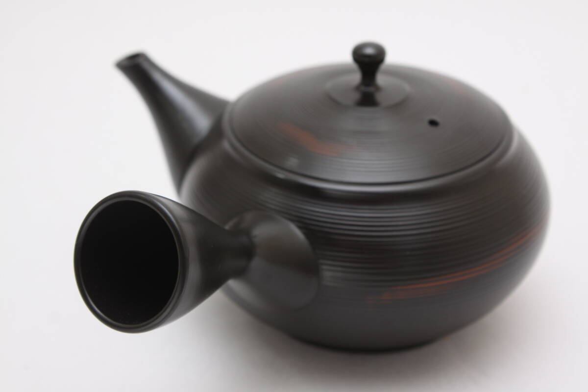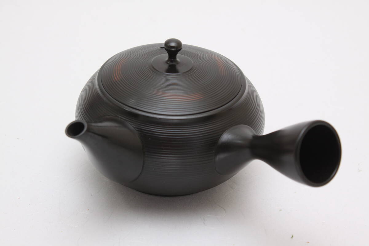1052 新品未使用 常滑焼 人気作家 昭龍 梅原昭二 窯変 筋引 黒泥 還元 192g 横手 急須 茶注 煎茶道具