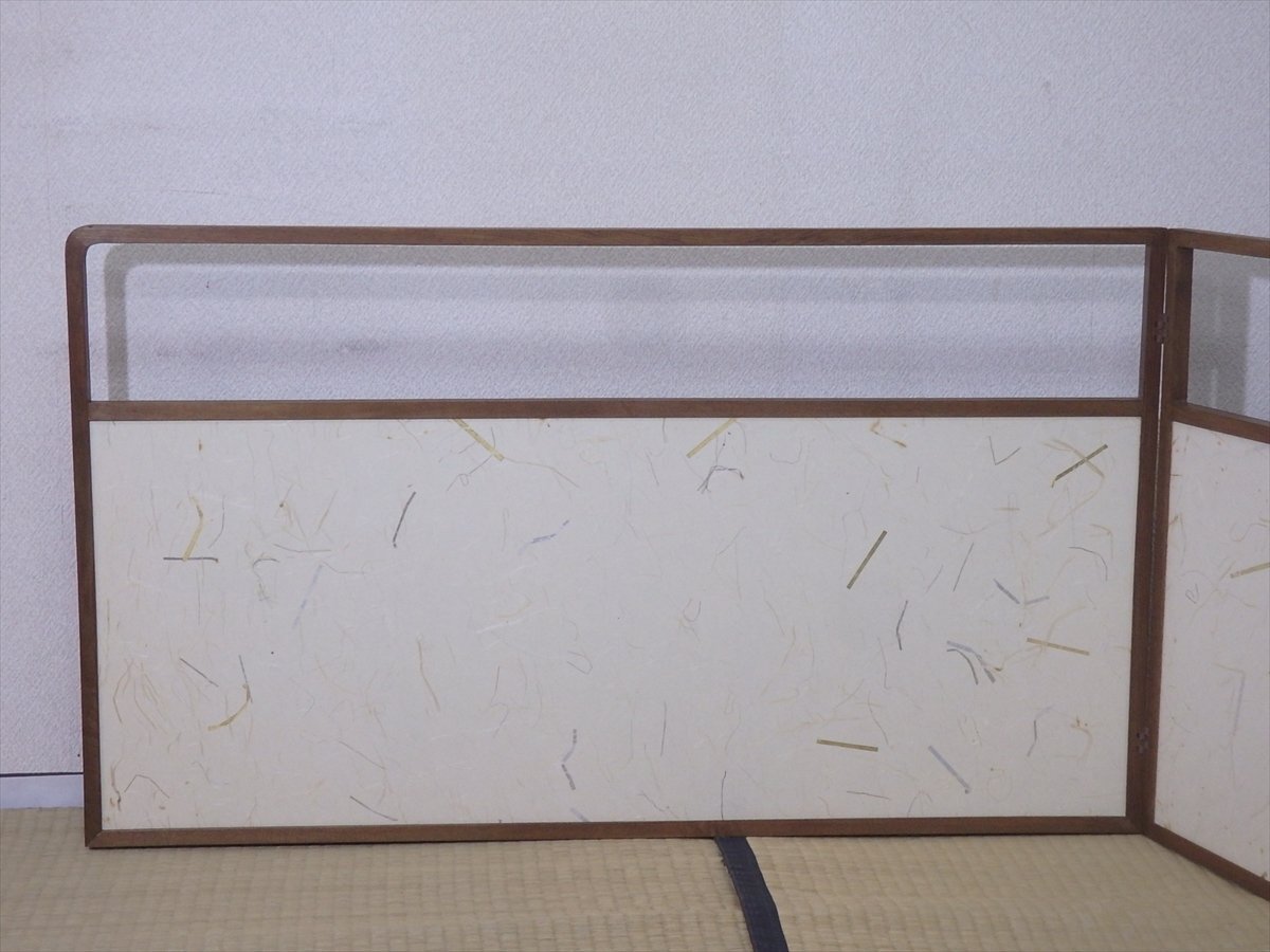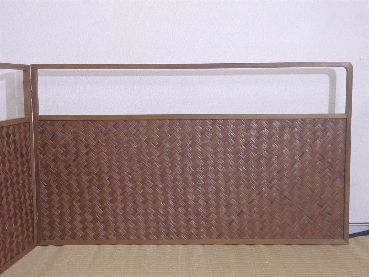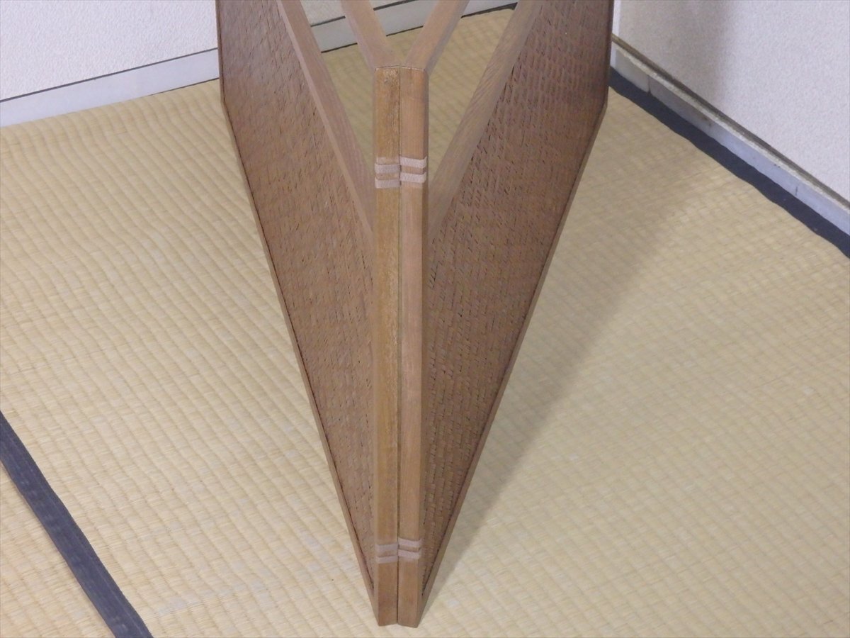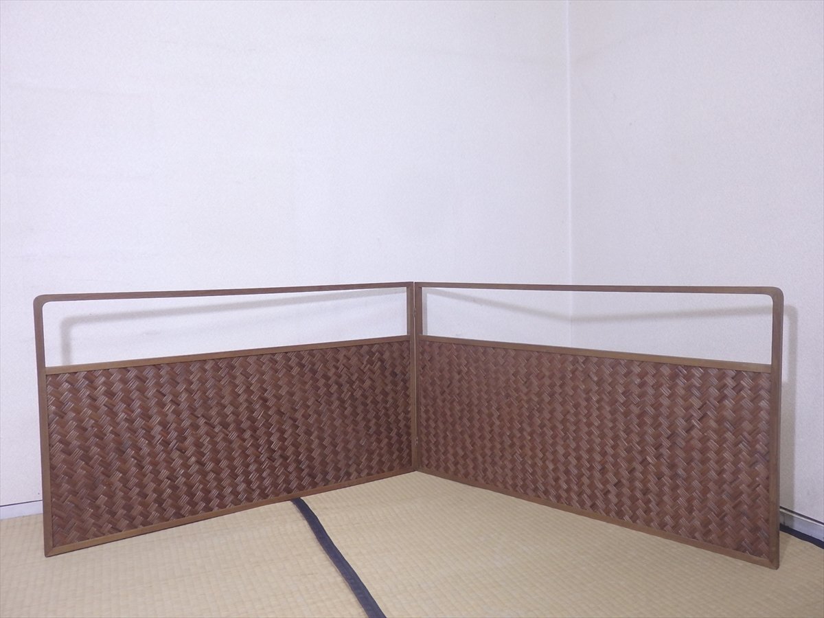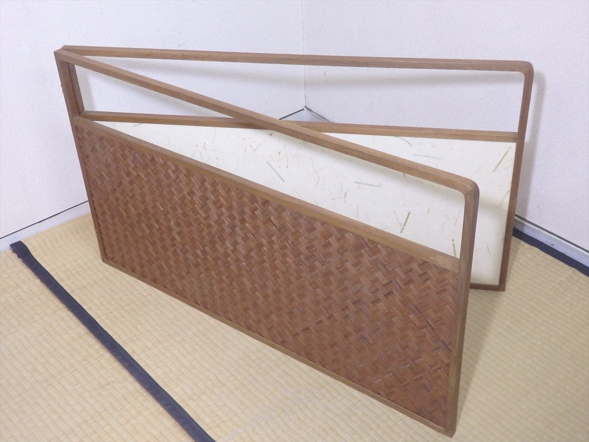 ★両面【網代 風炉先屏風】裏面は和紙(金銀散し) 幅94.5cmが2面 高さ54.5cm 茶道具 腰風炉先 家具 茶器