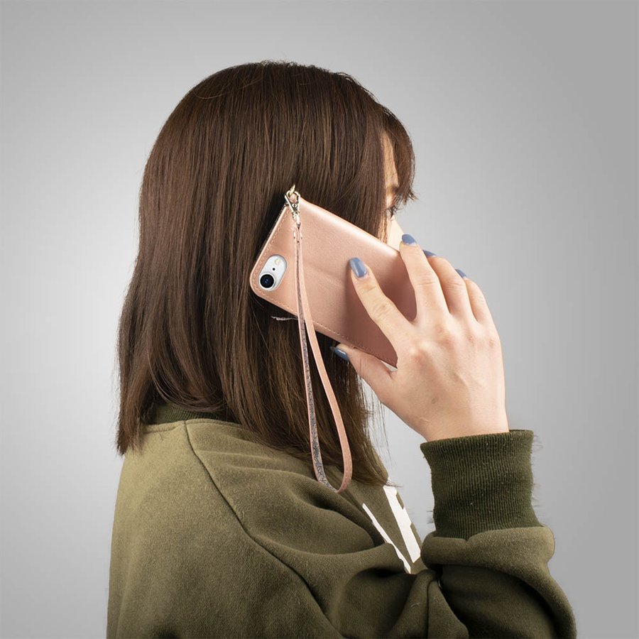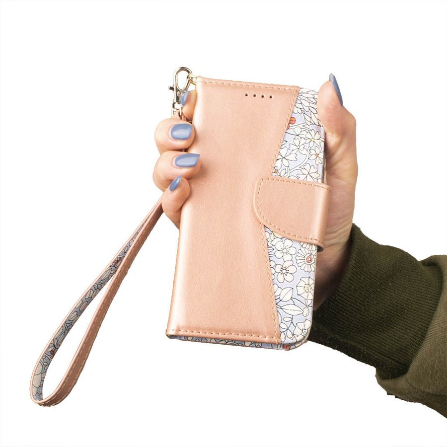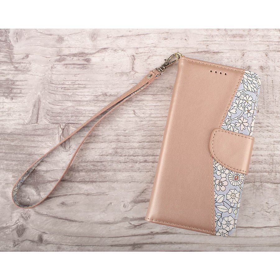 大人可愛い!ローズゴールドカラーの可愛い小花柄、手帳型ケース