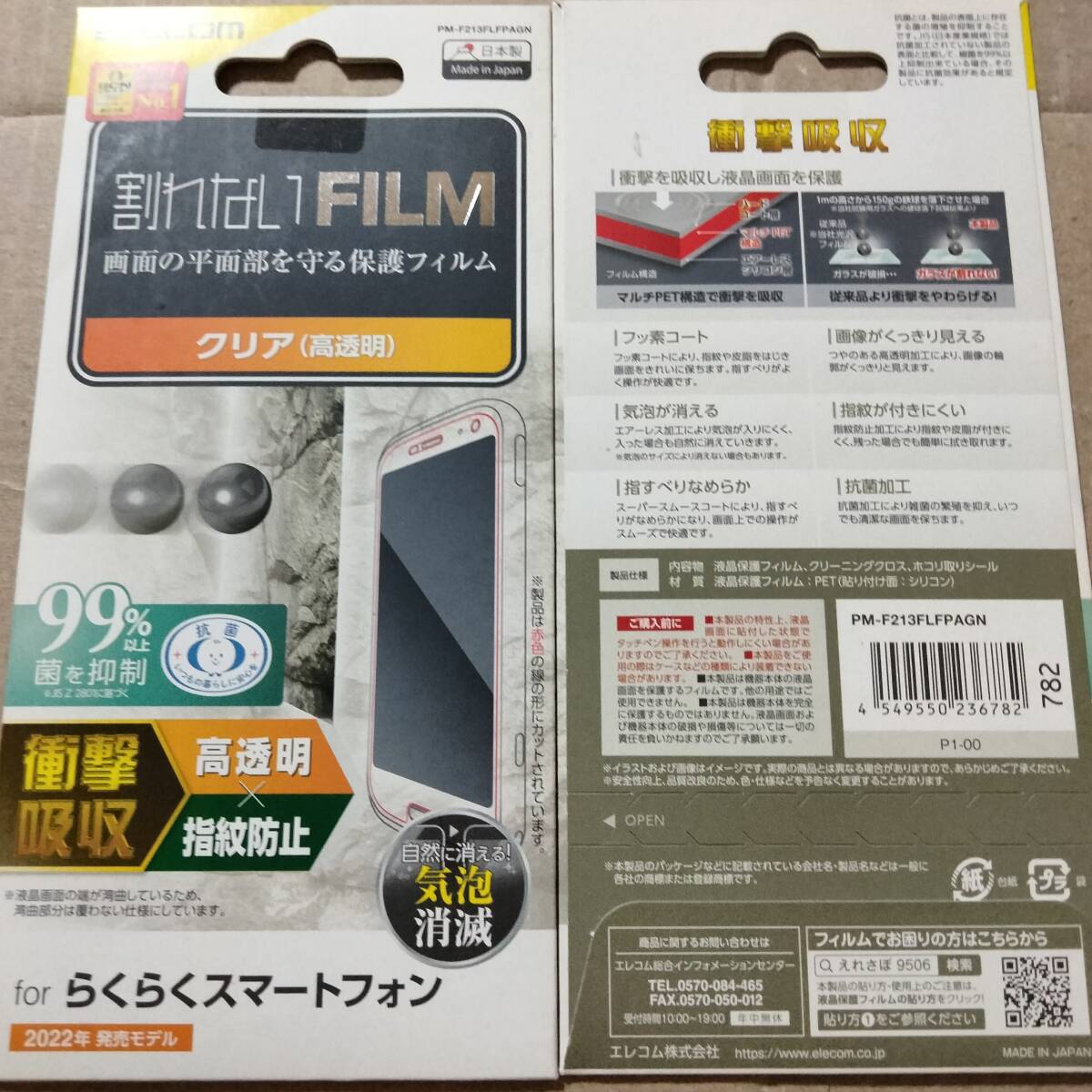 日本製 安心の日本製 ELECOM docomo らくらくスマートフォン F-52B フィルム 衝撃吸収 指紋防止 高透明 抗菌加工 雑菌繁殖抑えいつでも清潔