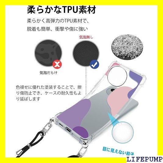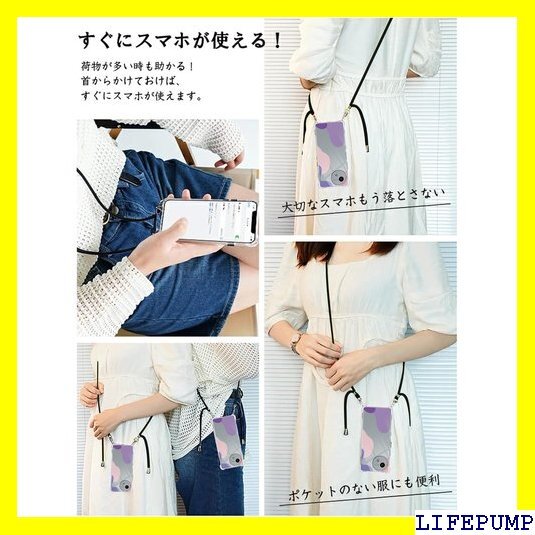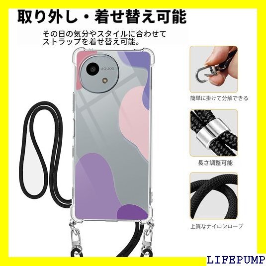 AQUOS wish4 用 ケース SH-52E カバー クリア 調節可能な ショルダー アクオスwish4 スマホケース 肩掛け 首掛け 斜めかけケース おしゃれ かわいい 韓国 透明 TPU ストラップ付き 薄型軽量 耐衝撃 全面保護 落下防止 可愛い ニュアンスネイル風 AQUOS wish4 用 携帯カバー パープル 1715