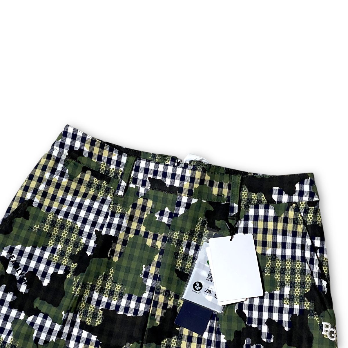 サイズ 0 製品寸法 ウエスト70cm 総丈39cm 裾幅54cm 素材 コットン98% ポリウレタン2% カラー 186:ネイビー×ホワイト×オリーブ系 コンディション 新品・未使用・正規品