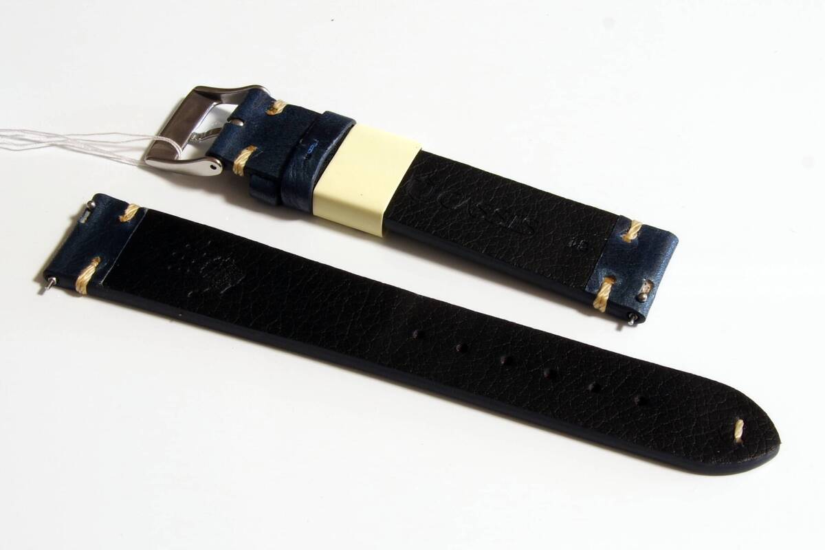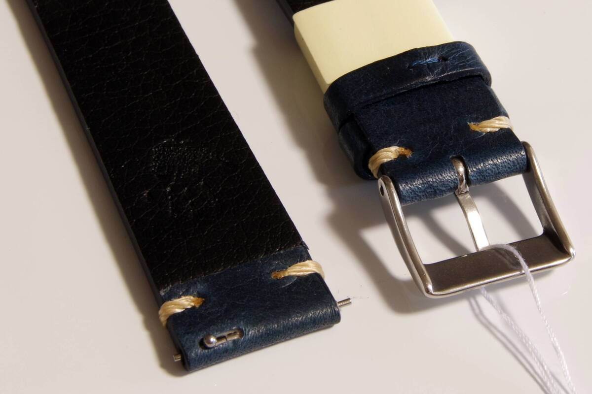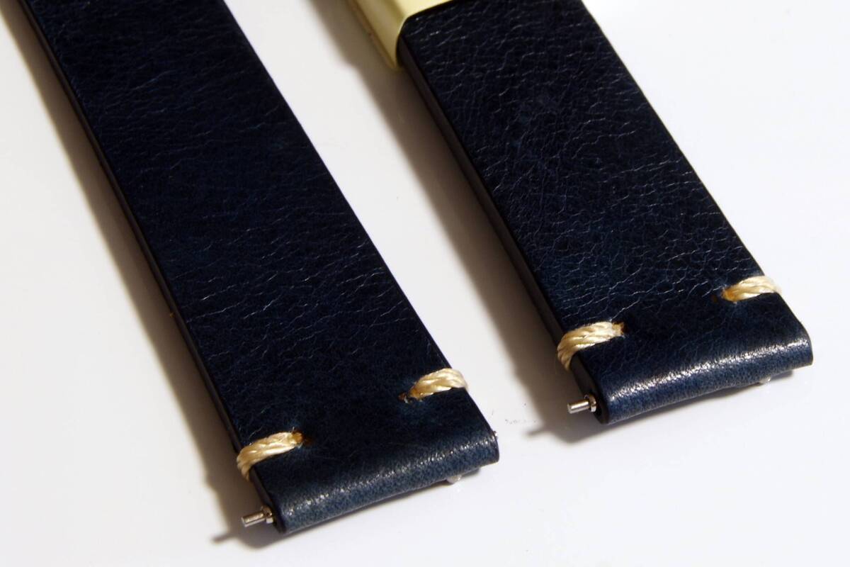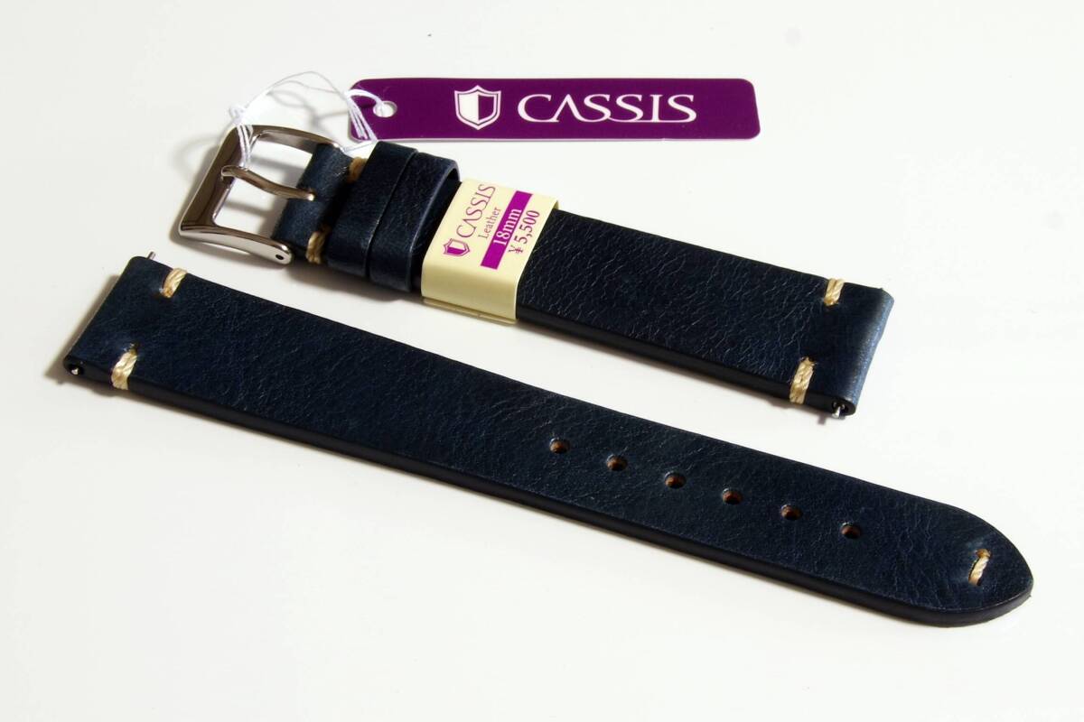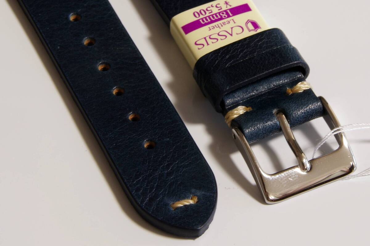 ヴィンテージ感のあるカーフを使用したモデル。 色むら等がよりヴィンテージ感を醸し出しています。 付け根にかがり縫いと剣先のステッチがアクセントになっています。 裏材には水・汗に強い合成皮革「LORICA(ロリカ)」を使用しております。 商品の詳細 商品名CASSIS GRENOBLE(グルノーブル) Navy Blue(065) 希望小売価格\5,500 材質カーフ皮革 金色/ステンレス尾錠(ご希望色にて) 画像の尾錠色と変更の場合は取引ナビよりお申し付け下さい。 サイズ ラグ幅 18mm 尾錠幅 16mm 長さは剣先側 115mm 尾錠側 75mm(尾錠含まず) 厚み約3mm カシスDバックル装着は可能です。 重量9g 発送の詳細 送料は当方で負担いたします。 匿名配送のネコポスでお送りいたします。 |