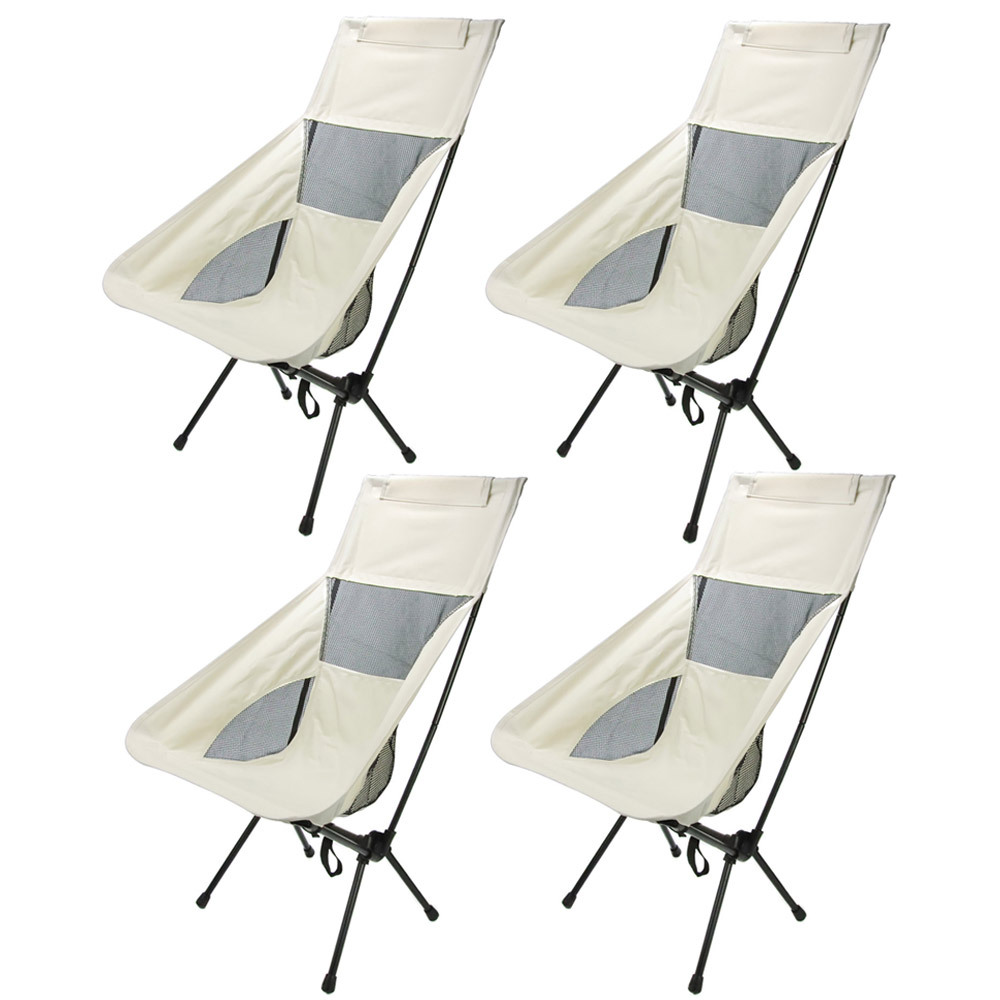 ■番号:H000161YB-4 ・展開サイズ:約66×55×88cm。 ・収納サイズ:約14×14×43cm。 ・座面高さ:約40cm。 ・背もたれ高さ:約88cm。 ・重量:約1.8kg。 ・耐荷重:最大130kg。 ・材質:600Dオックスフォード生地、通気メッシュ、スチールパイプ。 ・カラー:ベージュ色。 ・内容物:チェア本体×4、収納袋×4。 | |