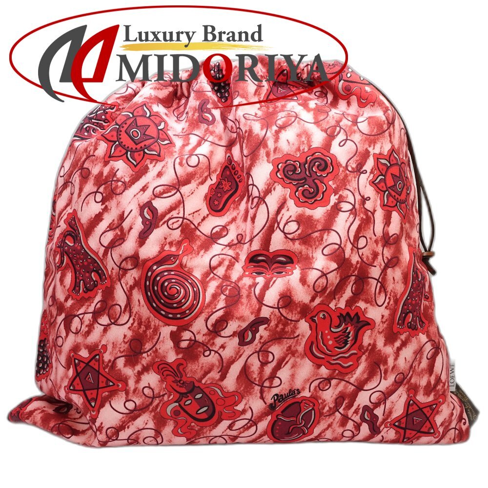 LOEWE ロエベ ポーチ PAULA LARGE DRAWS パウラドローストリング キャンバス BLUE(ブルー) RED(レッド)/181466【中古】