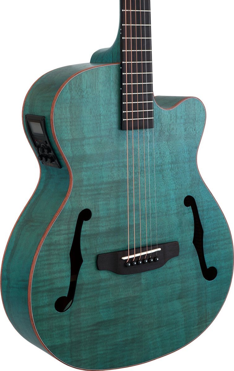 Fホールを採用したエレクトリック・アコースティックギター。ボディにはウッドバインディングを施し、木目をいかしたオープンポアのマット仕上げを採用しています。4バンドイコライザーと、チューナー機能付きのプリアンプ“AEQ-4” を搭載しています。 Top:Flamed Nato Back&Sides:Flamed Nato Neck:Mahogany Fingerboard:Rosewood Frets:20F Scale:650 mm Nut width:43 mm Bridge:Rosewood Electronics:AEQ-4 Preamp&Piezo Pickup(4 band equalizer,Notch&tuner) |