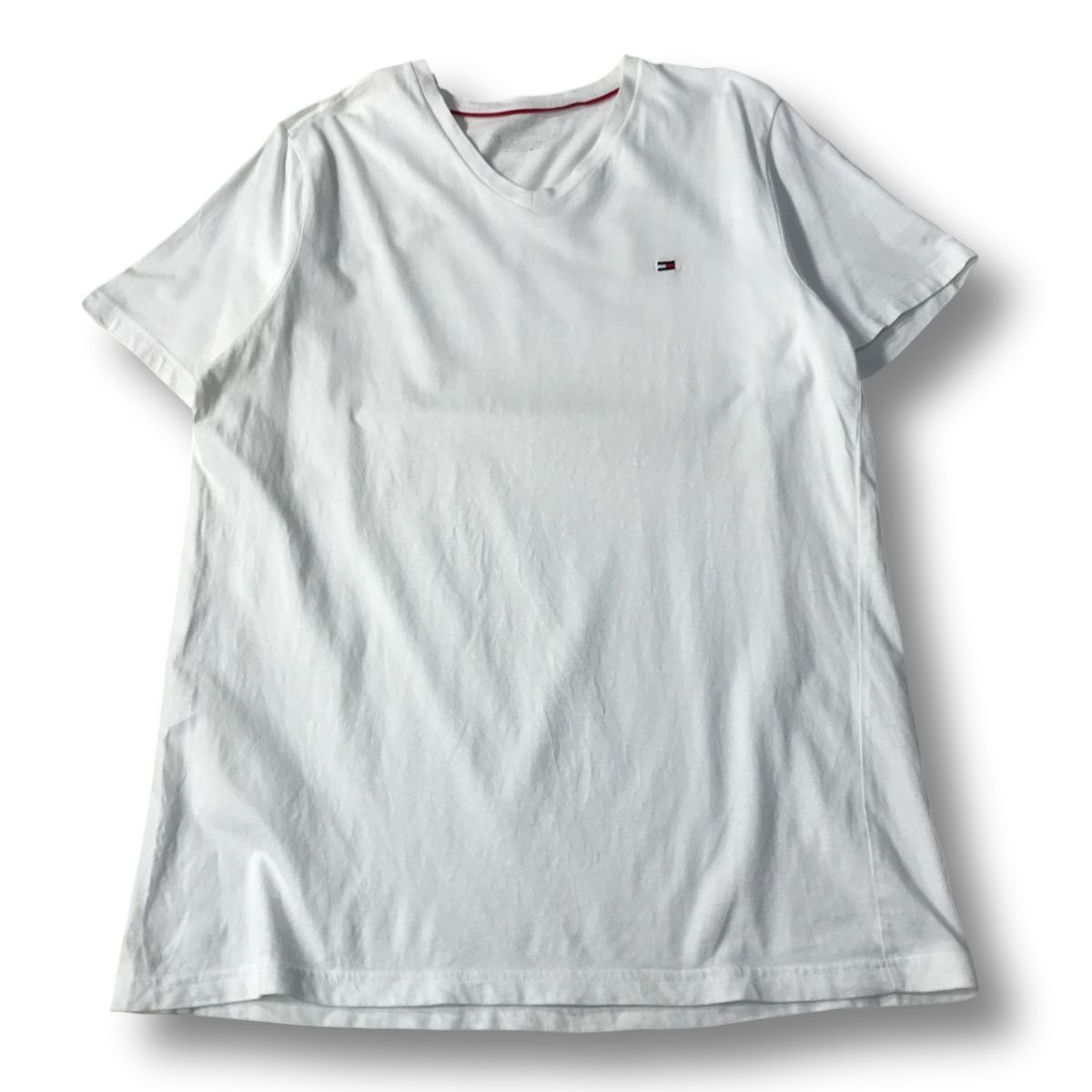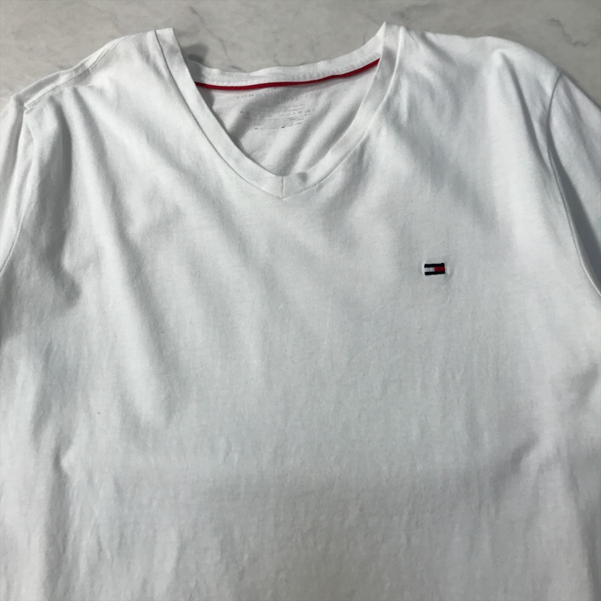 《良品◎》TOMMY HILFIGER トミーヒルフィガー★ワンポイント*Vネック*Tシャツ*カットソー*ホワイト*サイズM(MS4564)◆S60