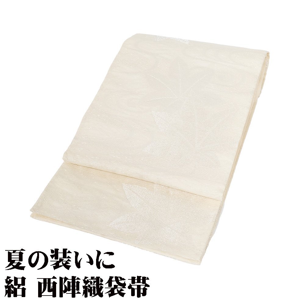| 絽 西陣織袋帯 クリーム・銀箔地 紅葉 仕立て上がり | |