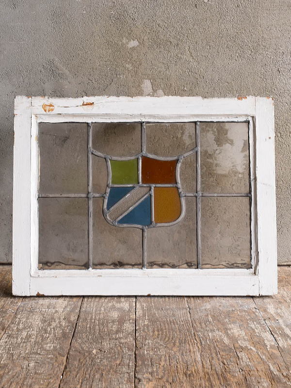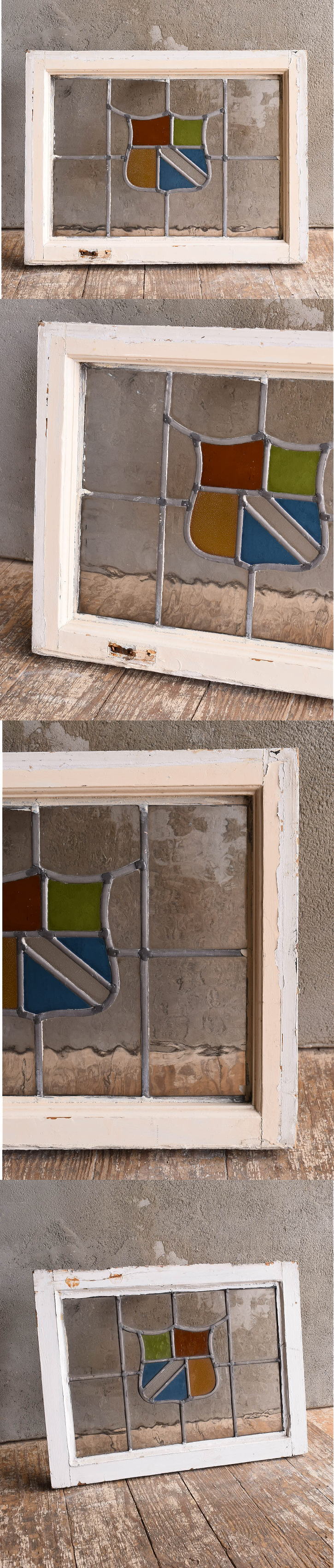 イギリスの蚤の市で見つけてきたアンティーク ステンドグラス窓(木枠)です。 イギリスの古いおウチから取り外されたものです。 ショップディスプレイのアクセントにも おすすめです。 ガラス部、キズ、気泡 (焼成時)、シワ スジは有ります ( 画像参照) 木枠は当時のものです、 ペイント剥がれや痛みがあります。 古い物とご理解下さい。 大きなダメージ無くコンディション良好です。 商品状態詳細は、画像にてご確認ください。