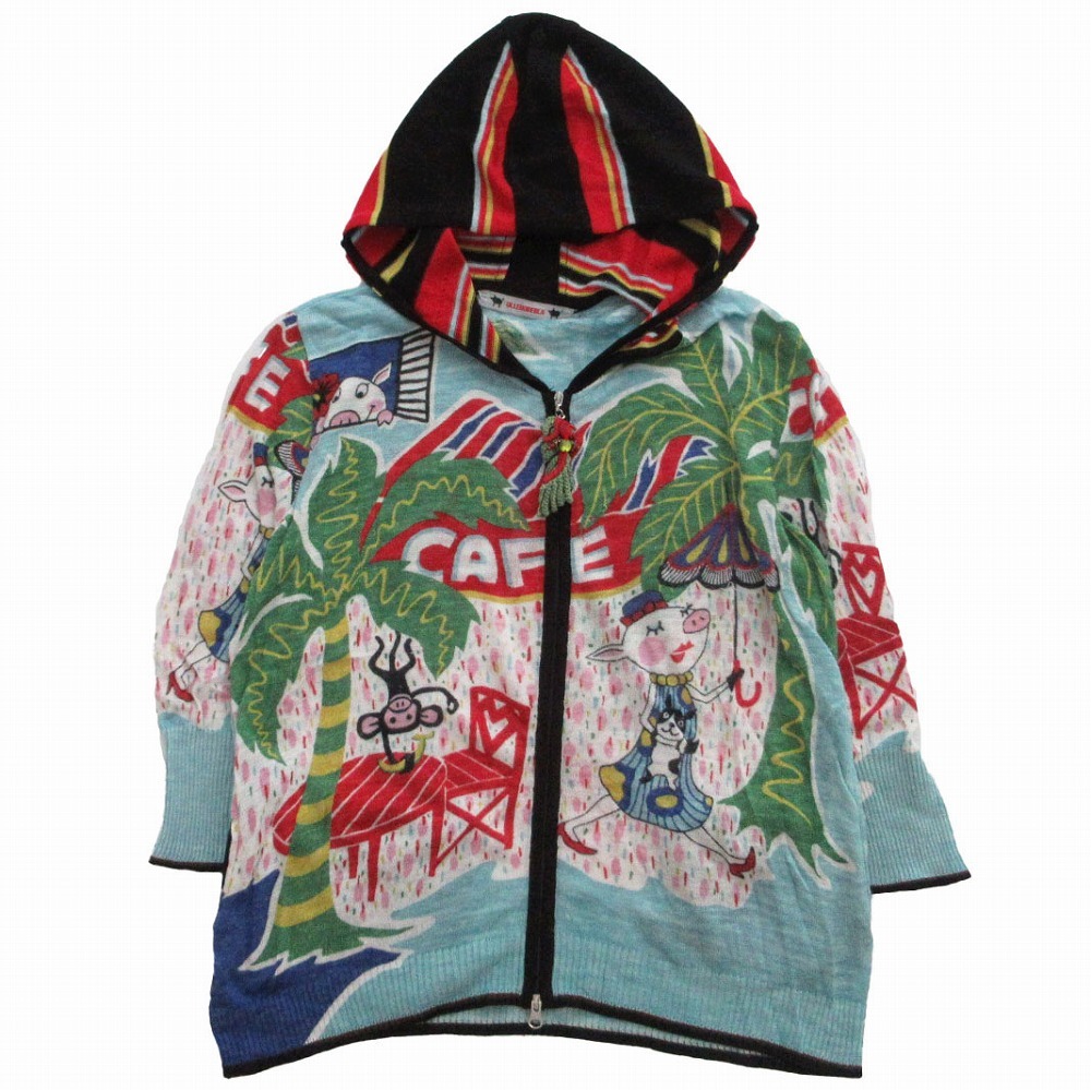 【アルベロベロ ALBEROBELLO ブタ ぶたさん プリント ニット ジップアップ パーカー マルチカラー レディース】 | |