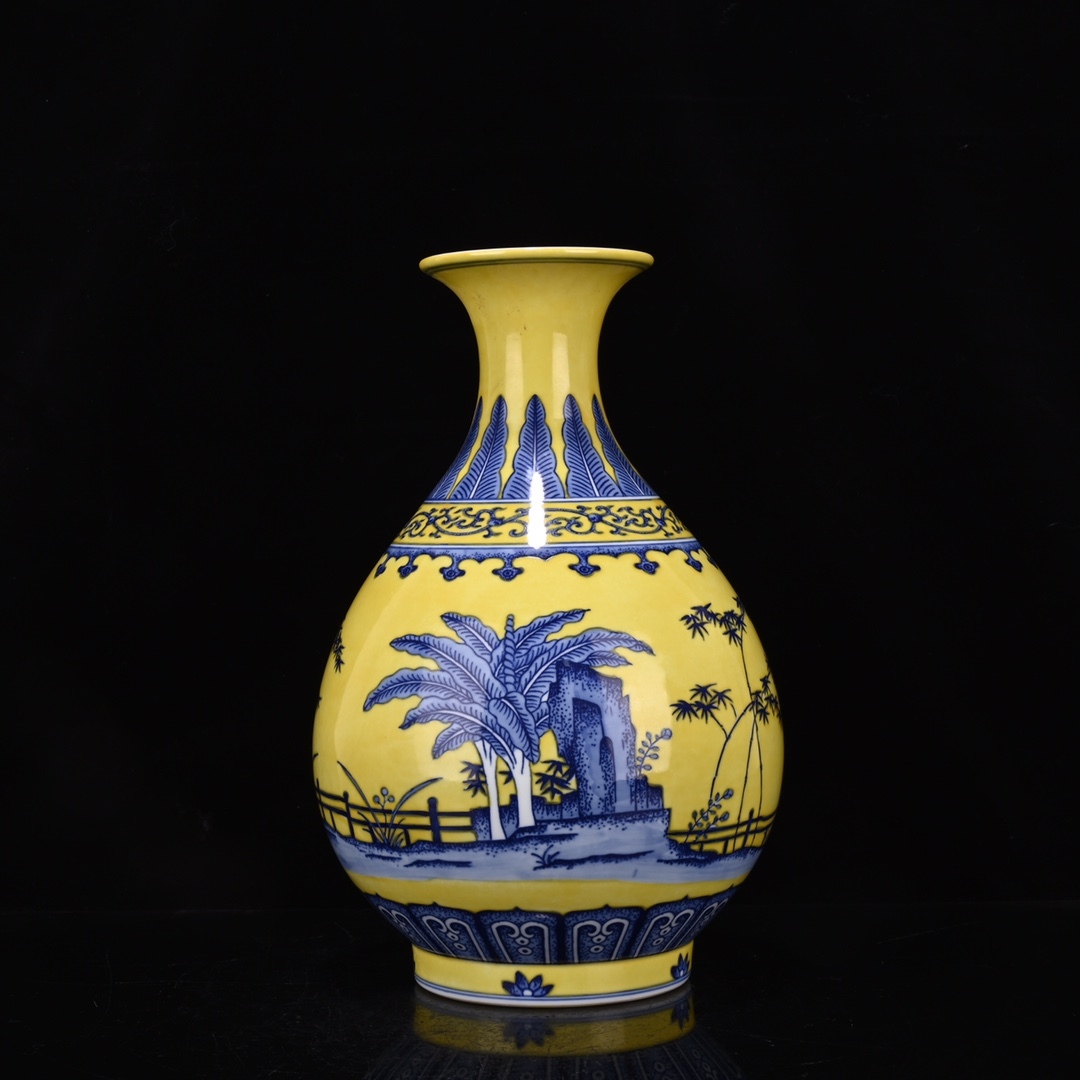 | 人間国宝 古磁器 白磁【清乾隆黄釉青花松竹梅玉壺春瓶】 工芸品 陶芸 磁器 置物 收藏品 時代物 中国美術 |        |||
