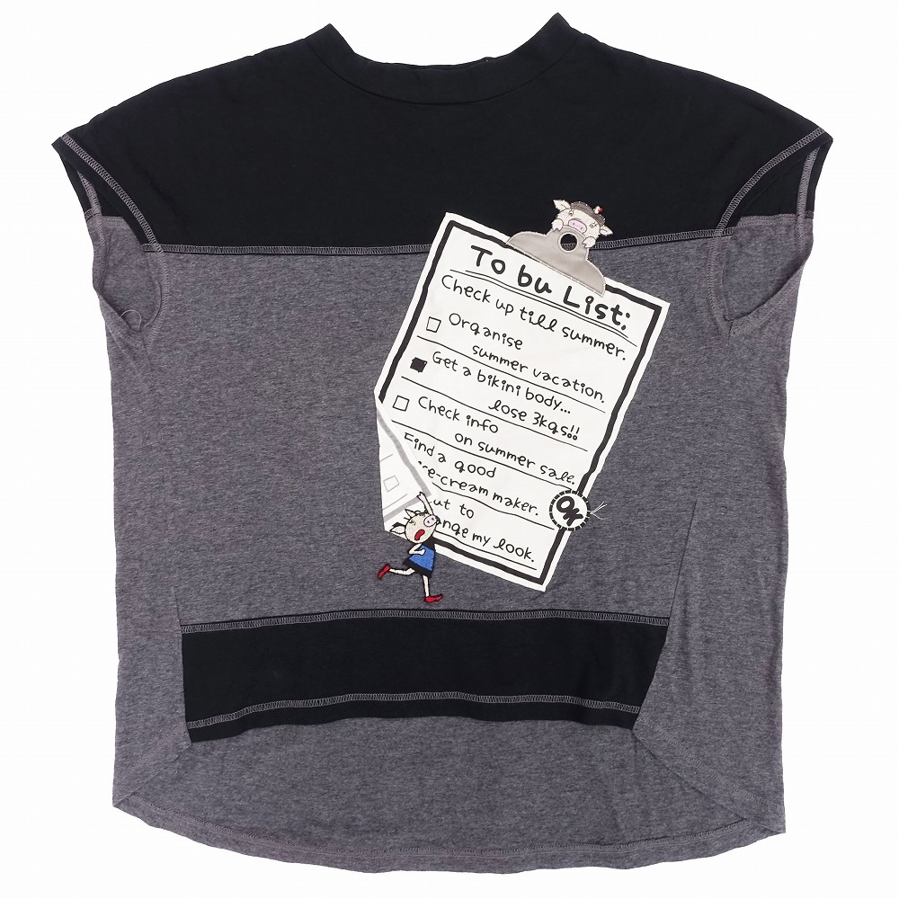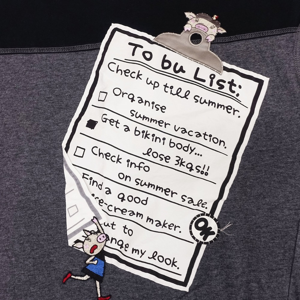 【アルベロベロ ALBEROBELLO オレボレブラ ドルマン Tシャツ カットソー ブタさん ダイエット リスト モチーフ 黒 レディース】 | |
