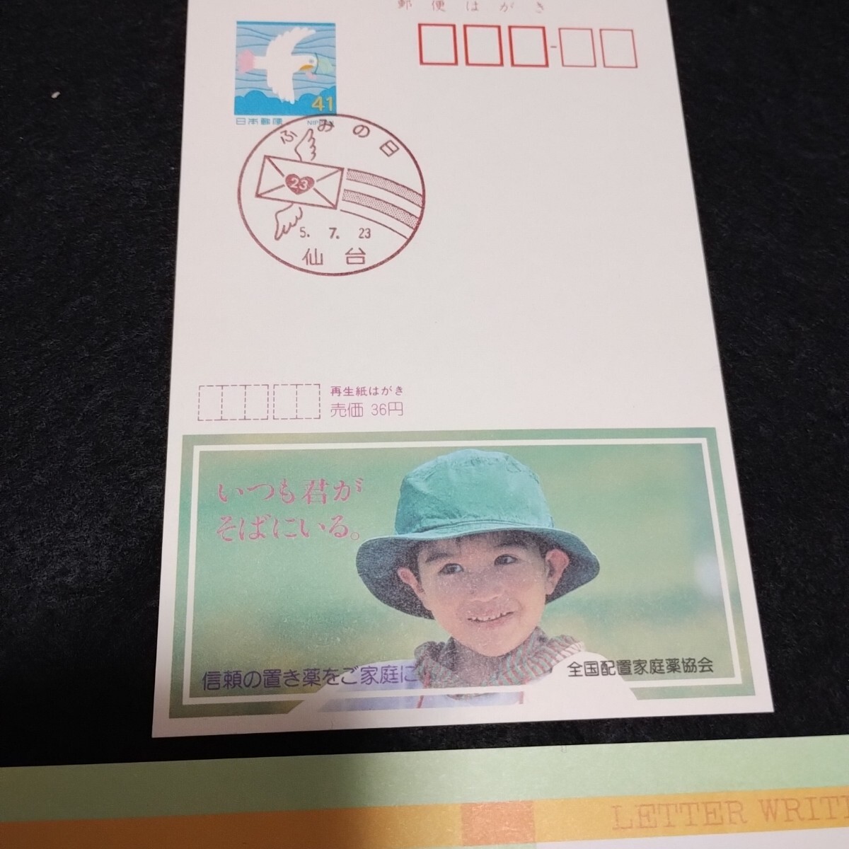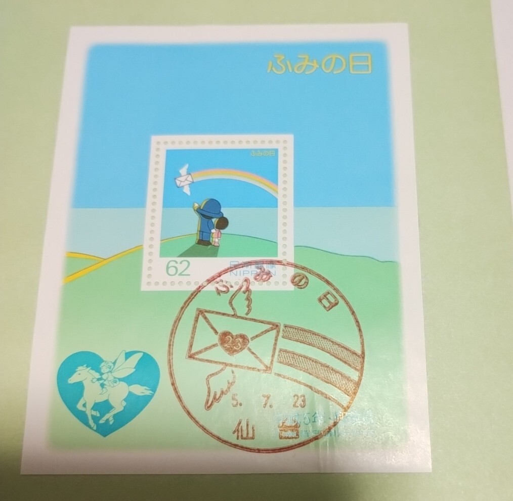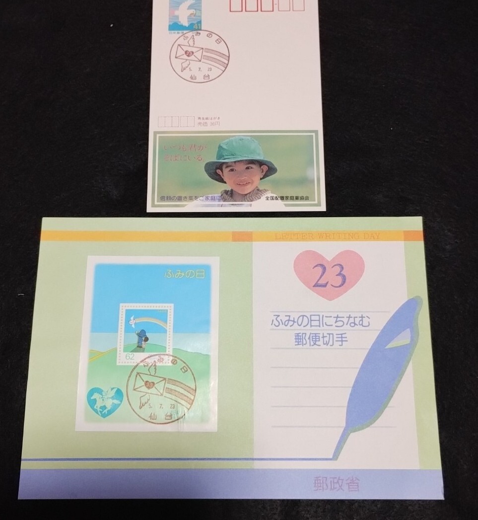 ふみの日記念押印はがきと切手です。