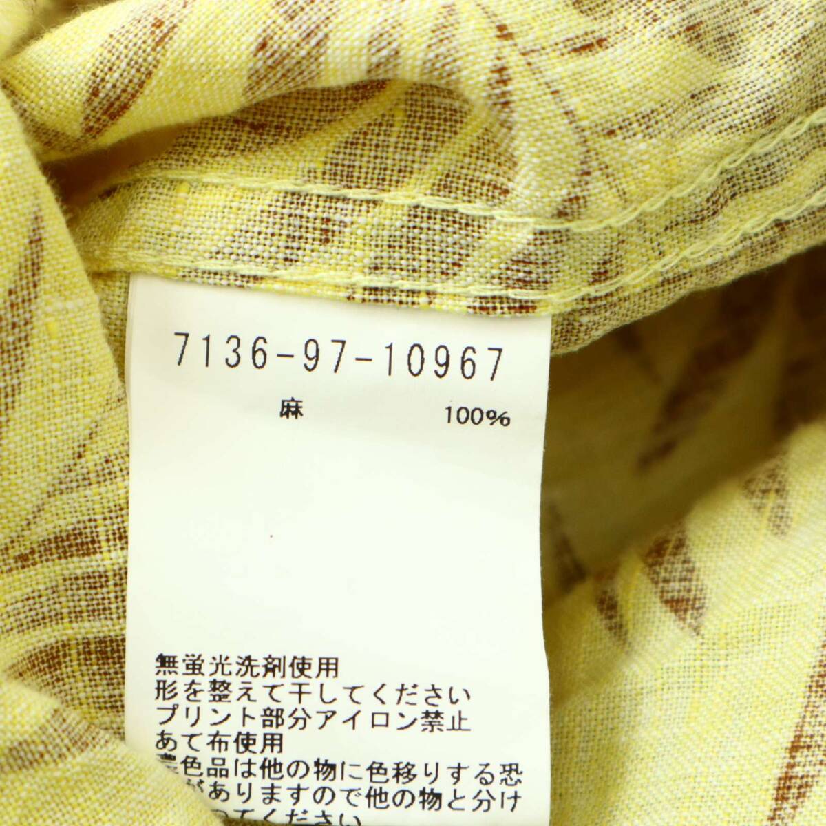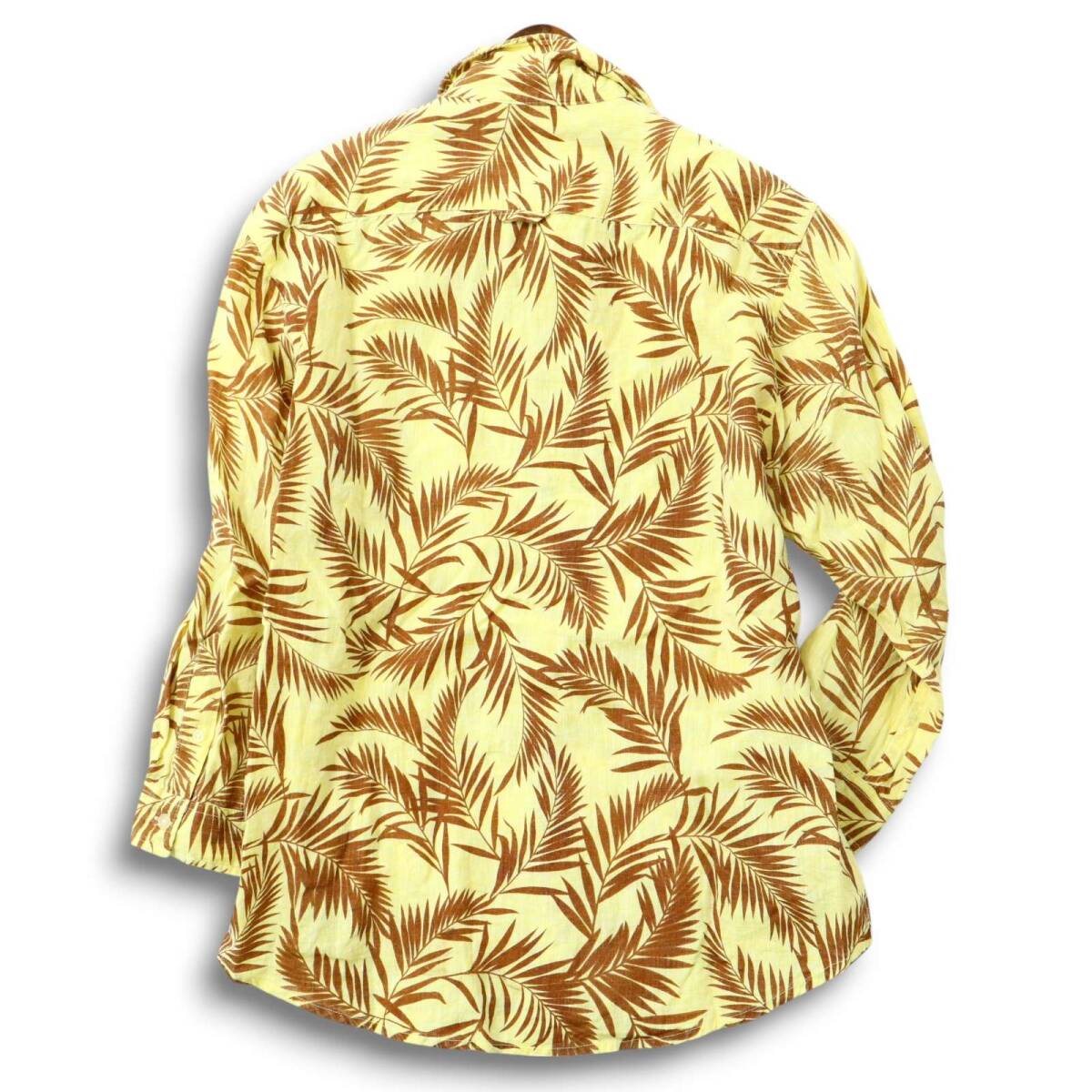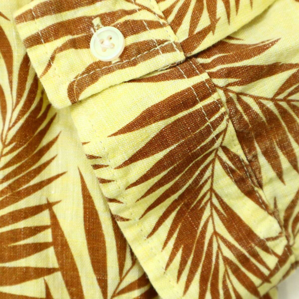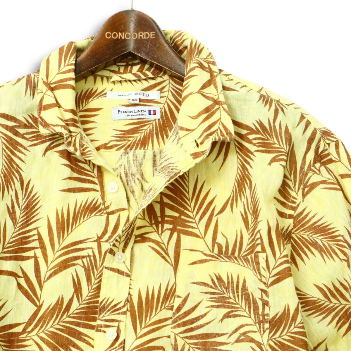 ABAHOUSE ecru アバハウス エクリュ 麻 フレンチ リネン100%★ 襟ワイヤー リーフ総柄 7分袖 シャツ Sz.50 メンズ