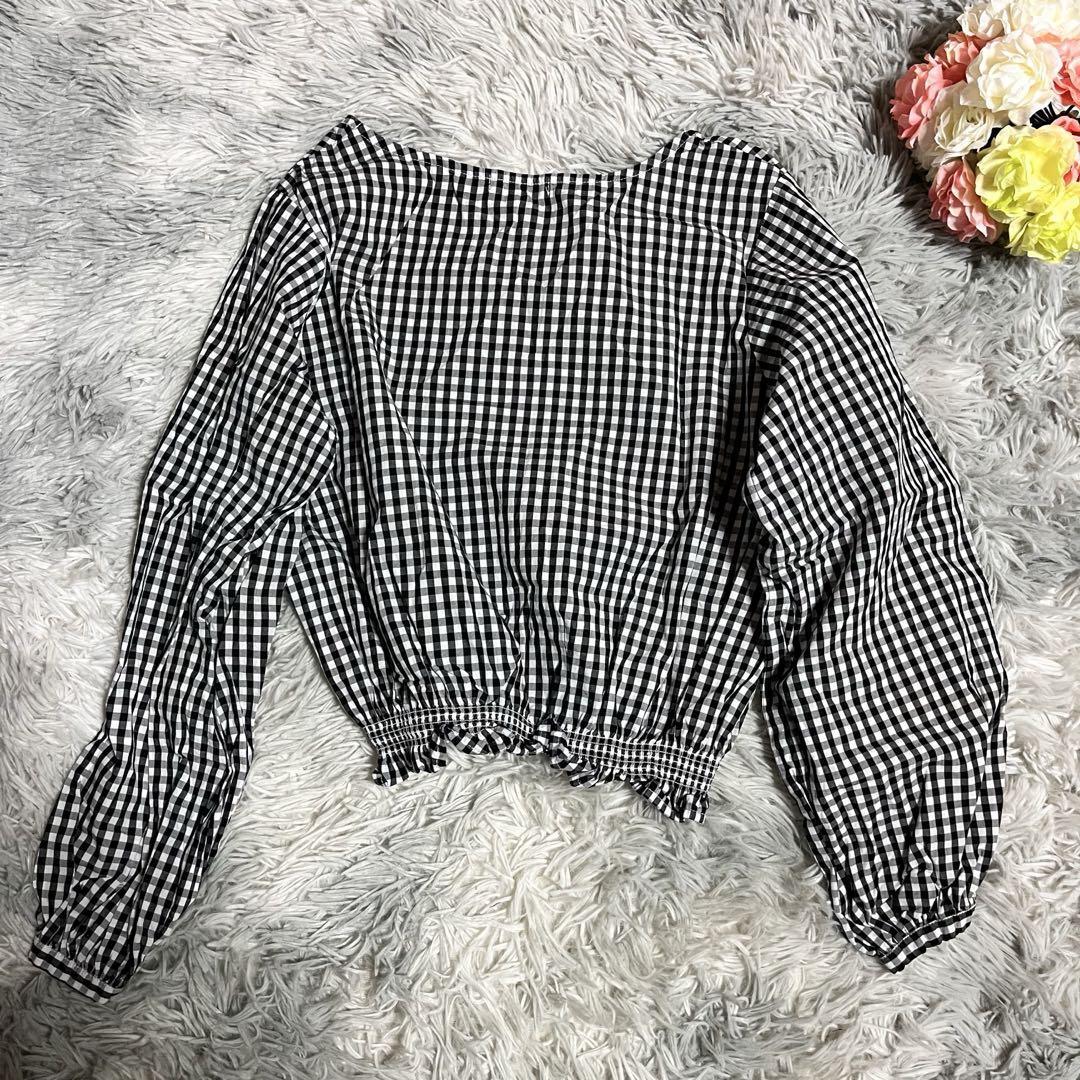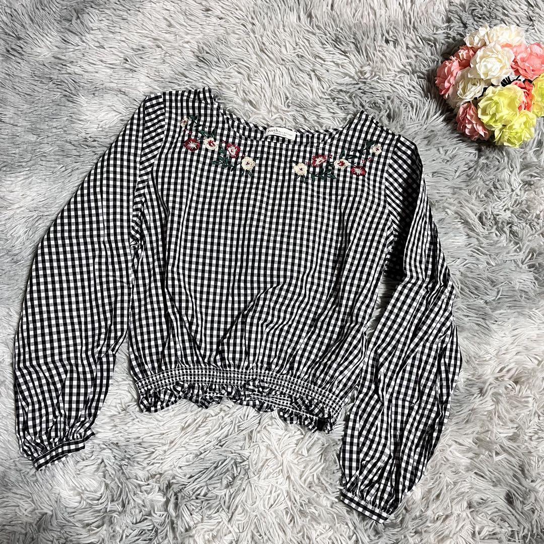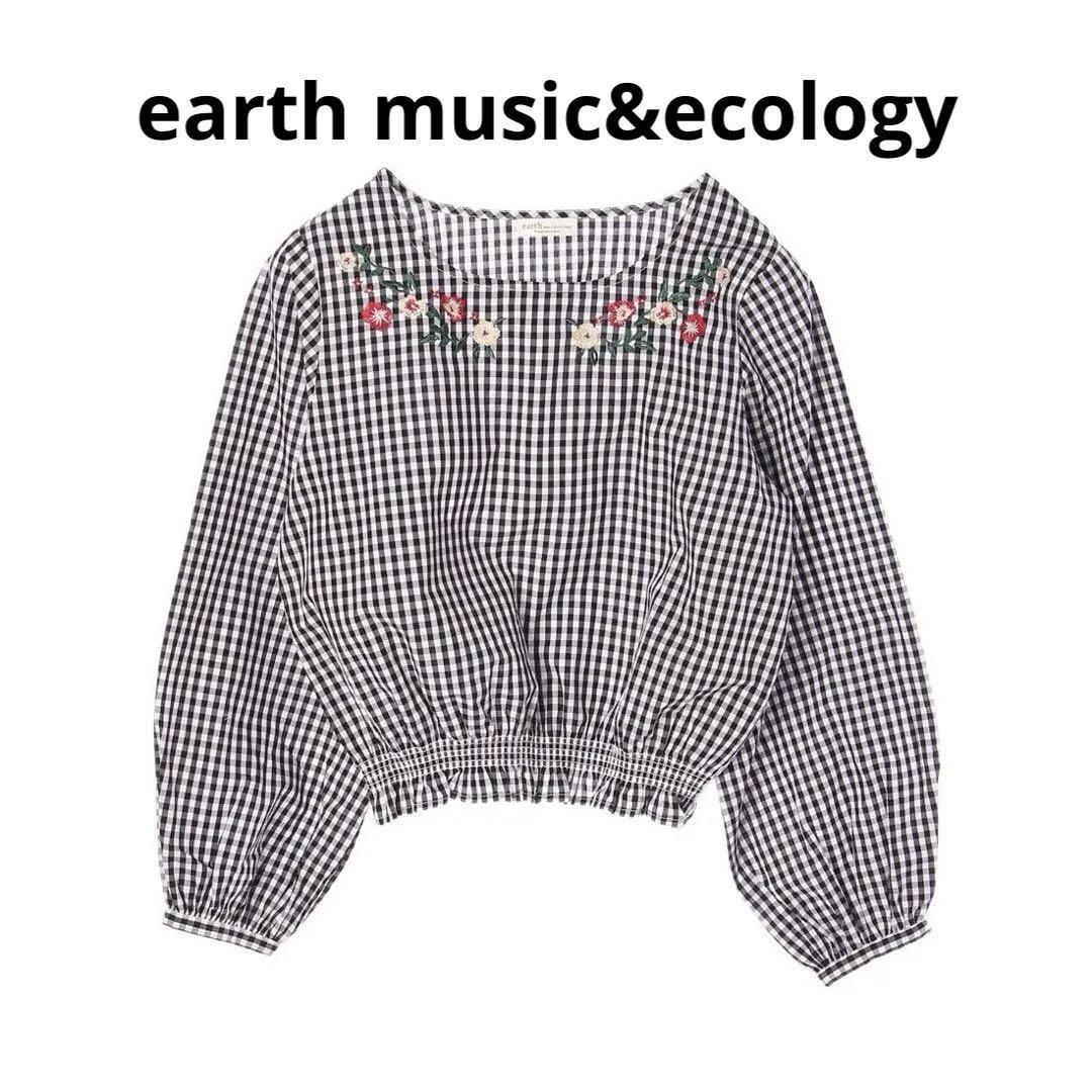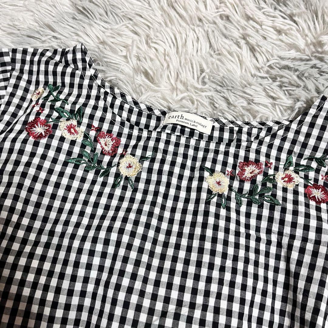 ◇アースミュージックアンドエコロジー earth music&ecology ギンガムチェックキャンディスリーブブラウス 。