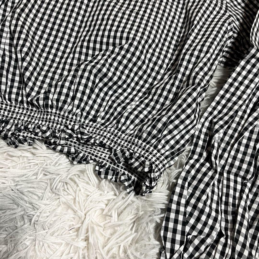 ギンガムチェックキャンディスリーブブラウス (Black)