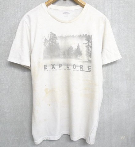 ◆アメリカ USA 古着 OLDNAVY オールドネイビー EXPLORE 自然 アートプリント クルーネック Tシャツ 白 サイズL 汚れ使用感あり