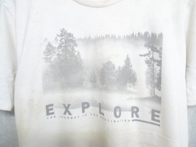 ◆ ◆アメリカ USA 古着 OLDNAVY オールドネイビー EXPLORE 自然 アートプリント クルーネック Tシャツ 白 サイズL 汚れ使用感あり