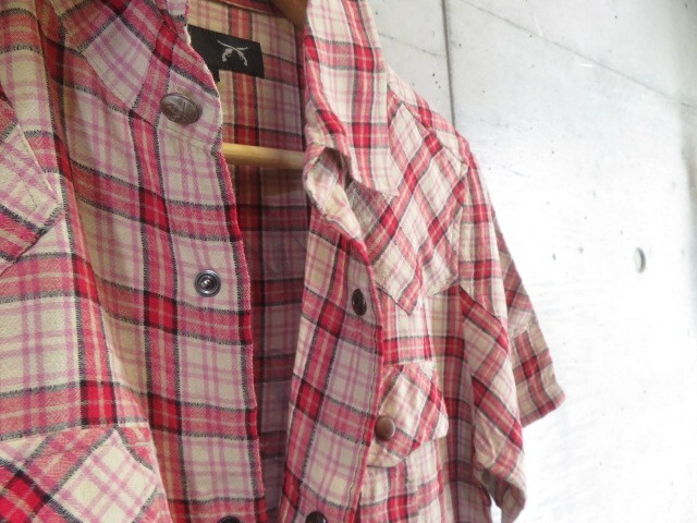 【送料300円可】1170b11◆良品です◆日本製◆roar ロアー 半袖レーヨンチェックシャツ 1/二丁拳銃/デニムシャツ/ジャケット/ニット/パンツ