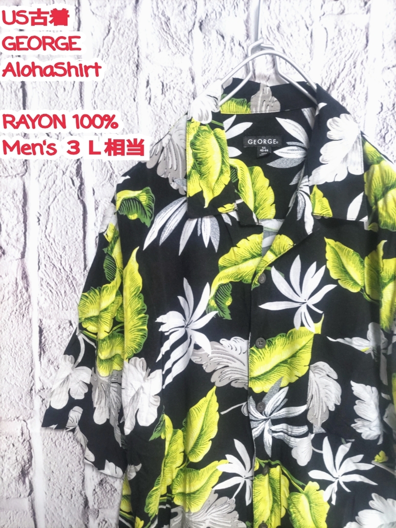 ★送料無料★ US古着 GEORGE アロハシャツ ハワイアンシャツ ジョージ アロハシャツ ボタニカル 3L 相当