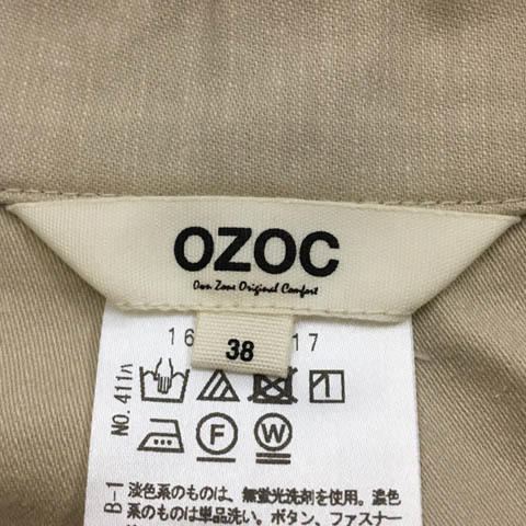 オゾック OZOC パンツ ベイカー ワイド ロング ハイウエスト 無地 38 ベージュ レディース