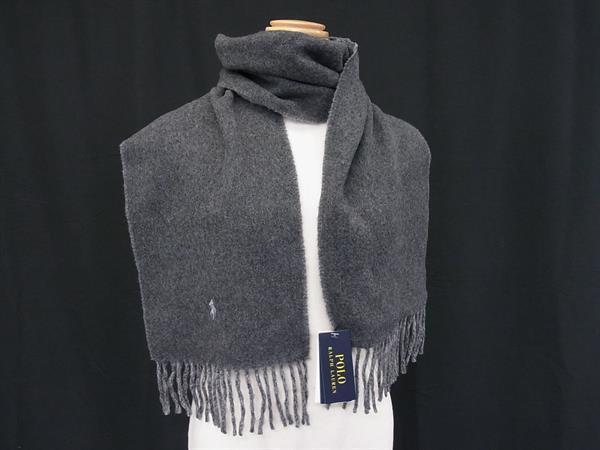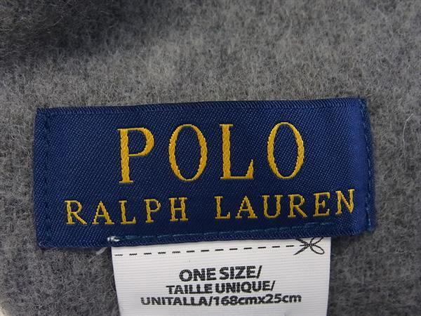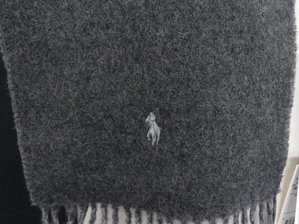 ■極美品■ POLO RALPH LAUREN ポロラルフローレン ウール80%×ナイロン20% フリンジ マフラー 防寒具 グレー系 FM3110