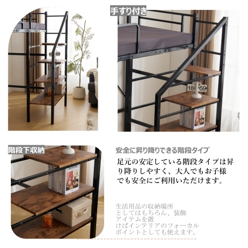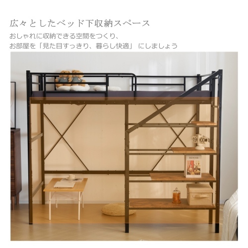 • 【ロフトベッドでお部屋を自由にデザイン】 ロフトベッドで限りあるスペースを賢く使って、お部屋をすっきりします。安全に昇り降りできる階段は収納棚にもなり、お部屋の限られたスペースを最大限に活用。 勉強スタイル、仕事スタイル、リビングスタイル、全部楽しめます!