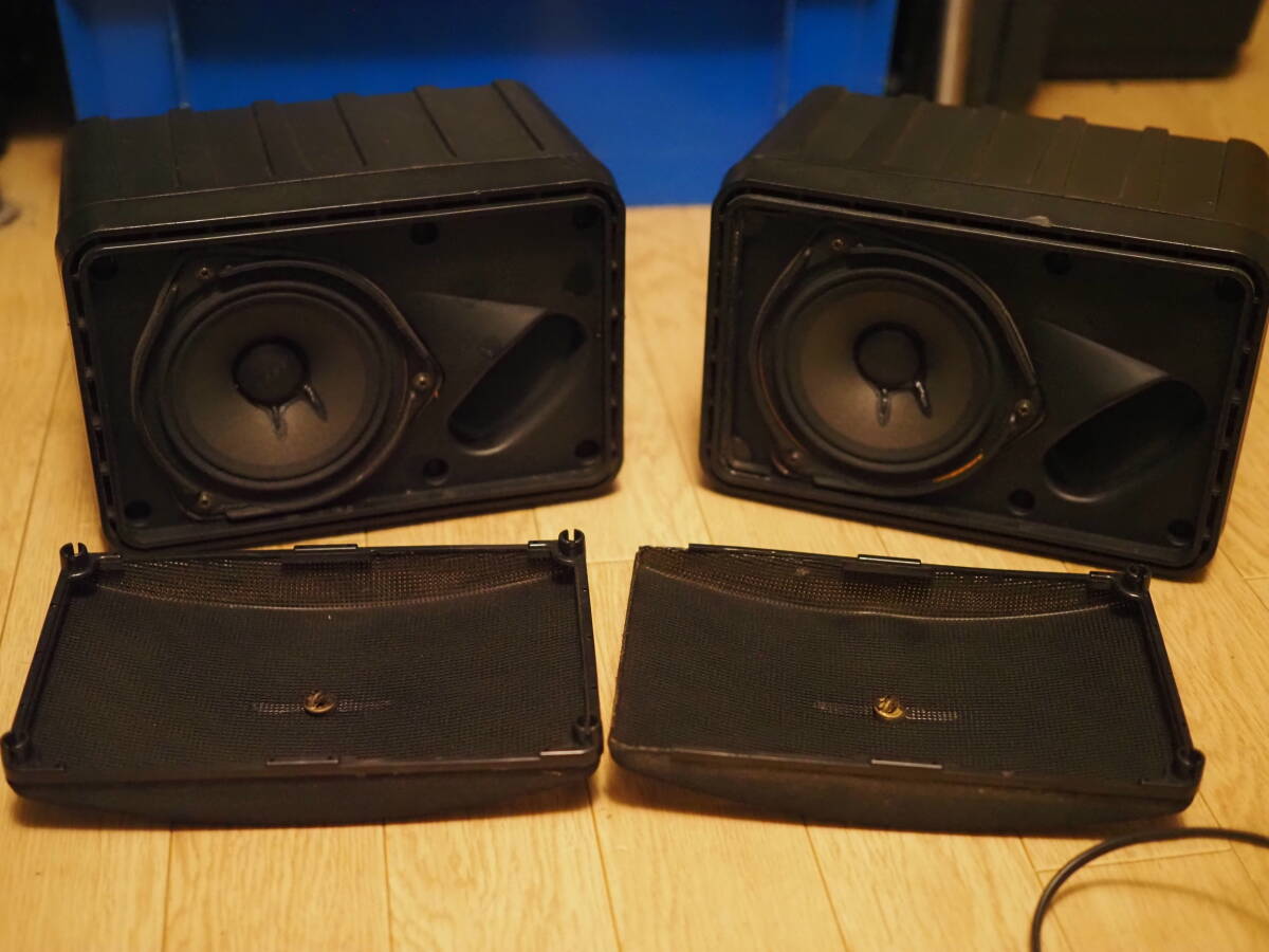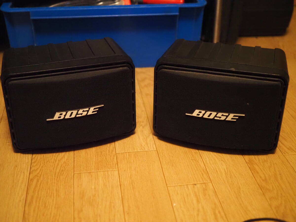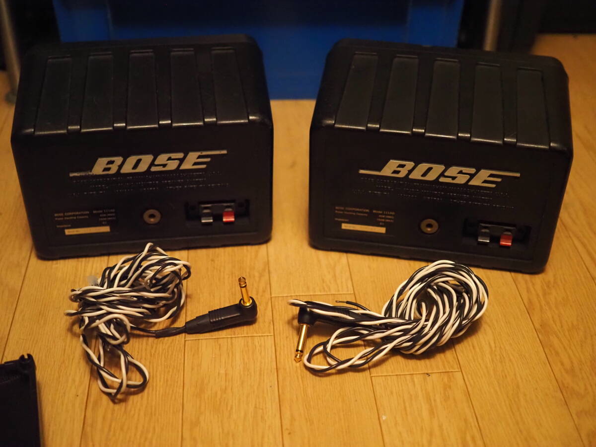 スピーカー: Bose 111AD (美品ではありません。エッジやコーンの破れもなく奇麗に鳴ります。写真向かって右側の前面グリルのフレームがプラスチックの劣化により割れていますが、割れた箇所はそのまま、スピーカーにはまっていることもあり特に使用上問題ありません。)