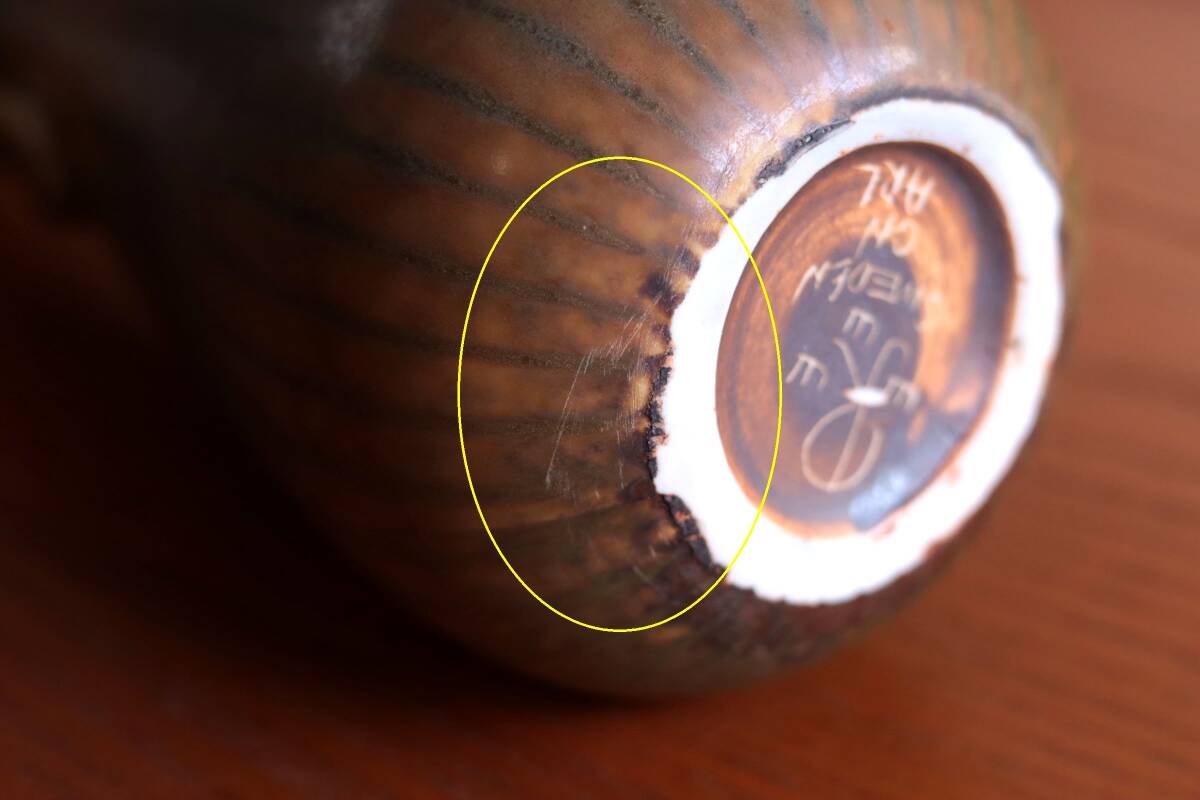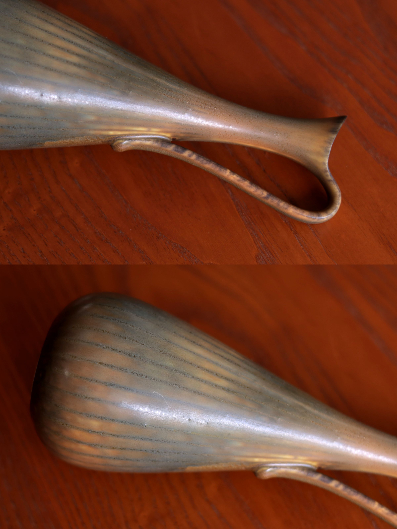 | 商品説明 | 品名:ARL Vase フラワーベース 花瓶 デザイン:Gunnar Nylund グンナー・ニールンド メーカー:Rorstrand ロールストランド サイズ:Φ7.3cm(最大径、取手除く)H20.0cm コンディション:表面は、側面底部に少し擦れがありますが(画像9)、全体的には少なくとても綺麗です。底部は、多少の変色はありますが綺麗です。全体としましては、とても良いコンディションです。*等級は2ndです。 Gunnar NylundデザインのARLモデルのフラワーベース。独特の釉薬が見せる様々な表情、フォルムを愉しめます。 |