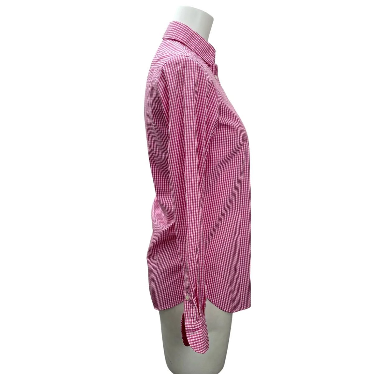 美品 イネド INED シャツ ブラウス 長袖 ギンガムチェック ピンク コットン 7、S、7号 レディース S5T124