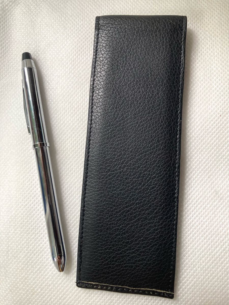 ◆ ペンケースは、ブラックレザー製で、サイズは16cmX5.5cmほどの2本差し。