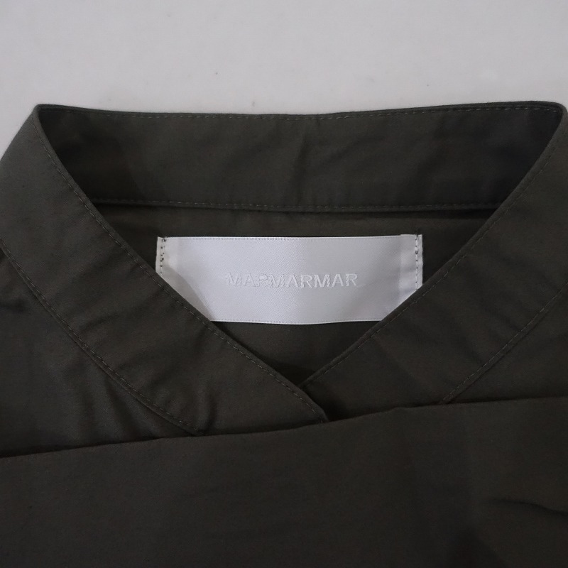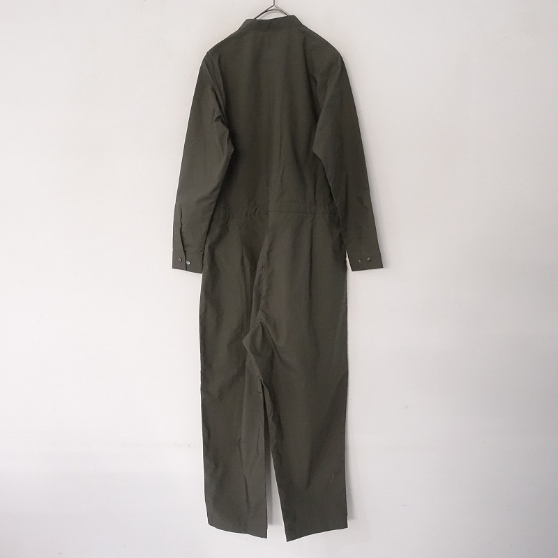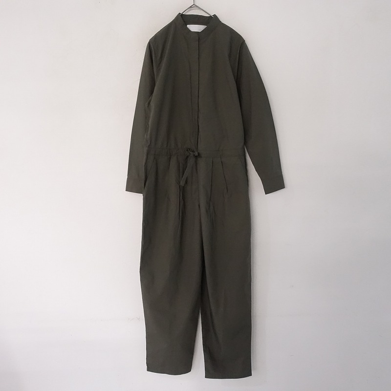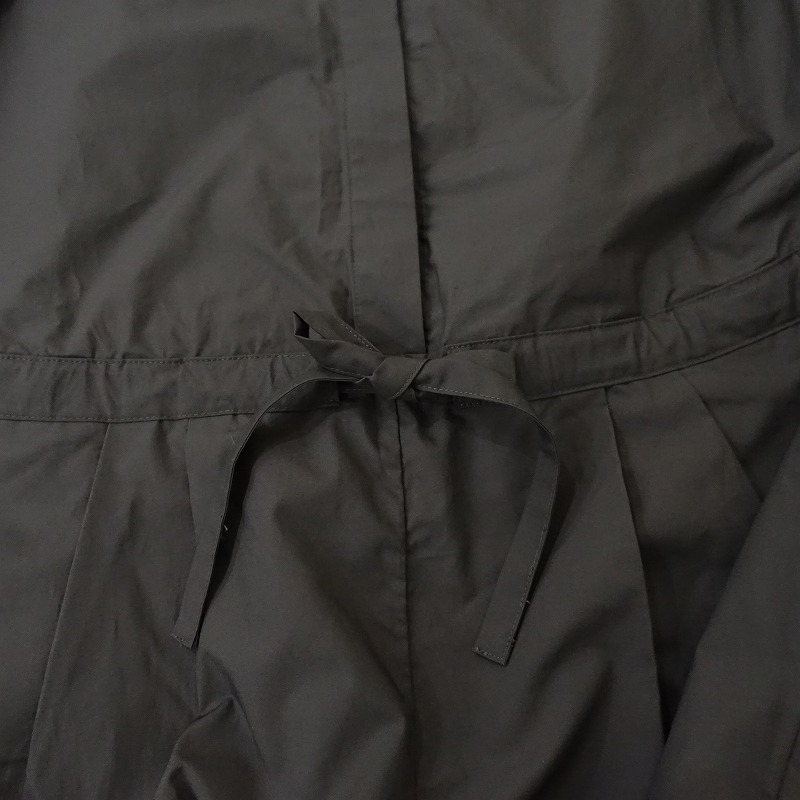 MARMARMARのコットンオールインワンです。カラーは少しブラウンがかったグレーで、布帛地です。前腰にタック入りで、フロントの比翼ボタンで着脱でき、ウエストには紐が通っております。袖口は2段階調節可能なボタン留めで、前腰左右にポケットがございます。 |