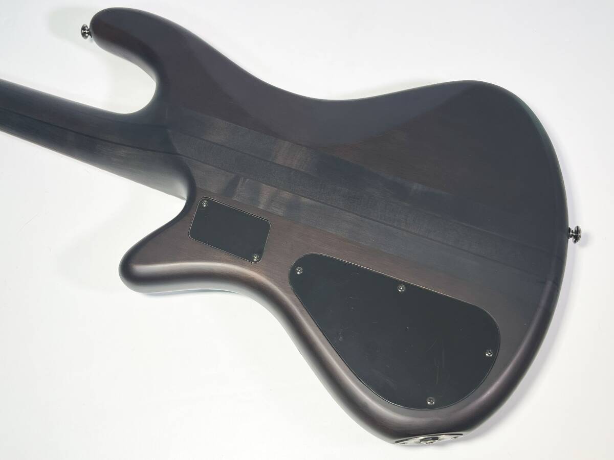 | シェクターより、高いコストパフォーマンスが人気のダイヤモンドシリーズより、スルーネックのアクティブエレキベース『STILETTO STUDIO-4』が入荷致しました! シースルー・ブラックサテンカラーで重厚で高級感のあるルックス! フロントPUとリアPUのバランサーに加え、3バンドEQにより幅広いサウンドメイキングが可能です! 低音域、中音域のEQは音の太さの変化幅が大きく柔軟に好みのサウンドキャラクターにアクセスし易く、高音域のEQはフィンガー奏法ではあまり変化を感じませんが、ピック奏法ではアタック感が増し、スラップ奏法ではより顕著に反応し、ちょうど欲しいところの音域が増してくれる感覚でございました! ジャンル問わず柔軟に対応できる1本です! 【商品詳細】 ■STILETTO STUDIO-4 ■カラー:シースルー・ブラックサテン ■ボディ:ブリンガトップ、マホガニーバック ■ネック:メイプル/ウォルナットマルチプライ ■指板:ローズウッド、24F ■ピックアップ:ネック/EMG 35HZブリッジ/EMG 35HZ ■コントロール:ボリューム、バランサー、3BAND EQ ■ブリッジ:Diamond Custom Bass |