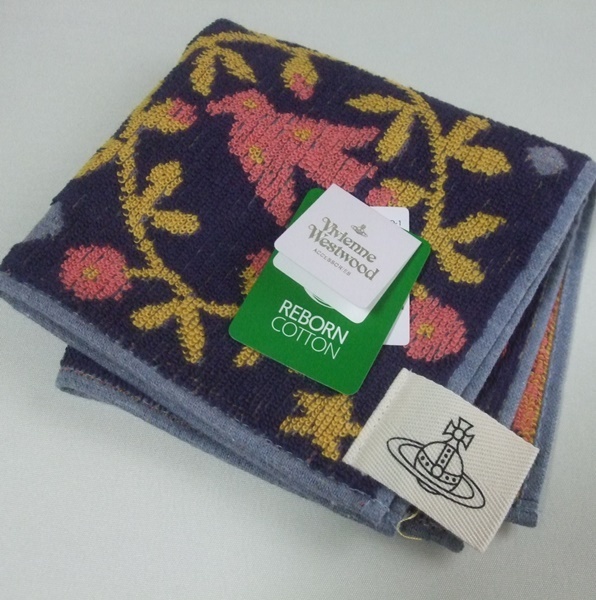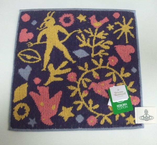Vivienne Westwood ヴィヴィアン・ウエストウッド デビル 鳥 ハート柄 タオル ハンカチ 未使用品 ネイビー系 百貨店