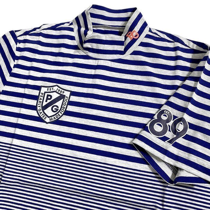| PEARLY GATES パーリーゲイツ 新品 定価1.4万 日本製 夏物 ソルディフェンダー 吸汗速乾×接触冷感 エンブレムプリント ボーダー柄 モックネック 半袖 カットソー インナー Tシャツ ゴルフウェア 2267703 021 5 ▲016▼50328w03 | |||