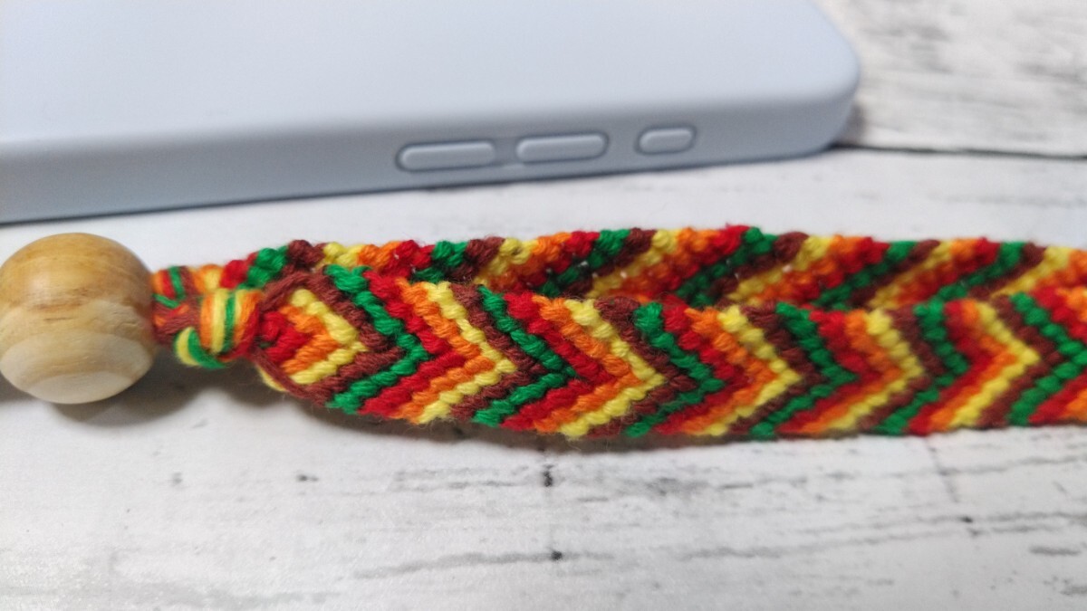 手首につける時は、ウッドビーズを下に下げて、使用時はあげると安定感が出ます。