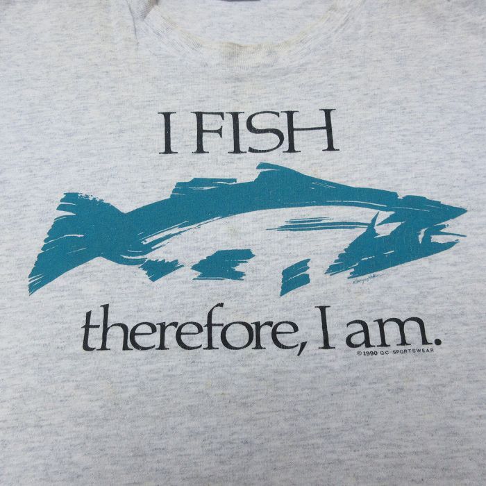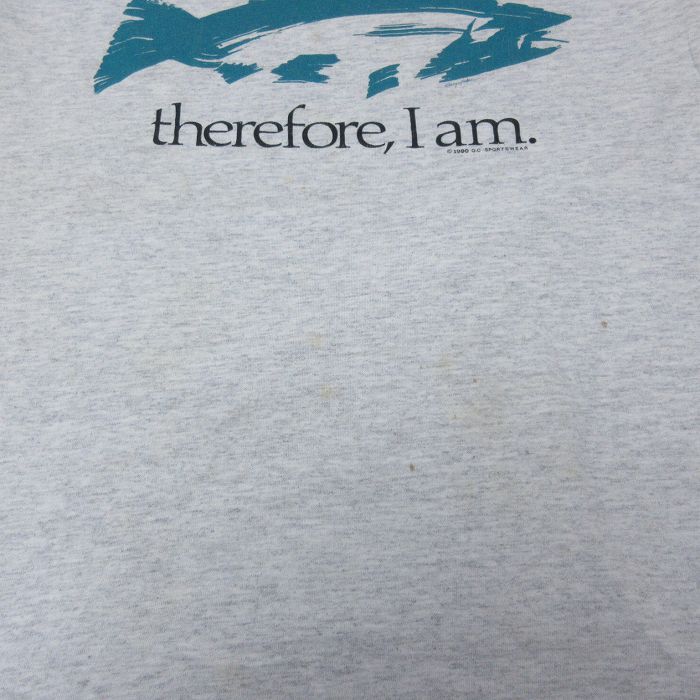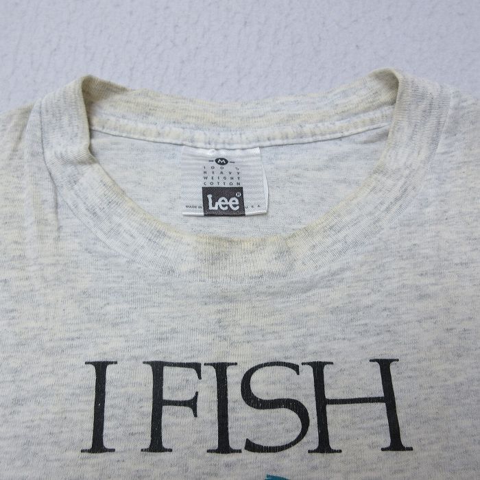 【商品名】 L★古着 リー Lee 半袖 ビンテージ Tシャツ メンズ 90年代 90s 魚 コットン クルーネック USA製 薄グレー 霜降り