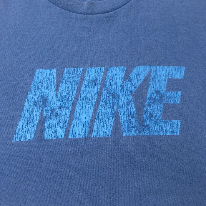 【商品名】 L★古着 ナイキ NIKE 半袖 ビンテージ Tシャツ メンズ 90年代 90s ビッグロゴ コットン クルーネック 薄紺【spe】