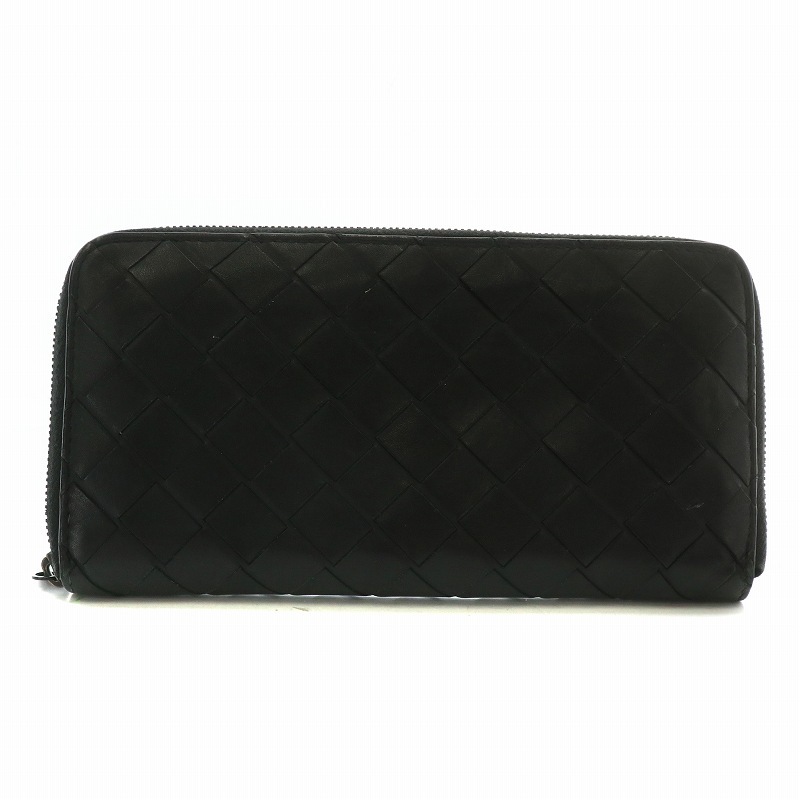 ボッテガヴェネタ BOTTEGA VENETA 593217 イントレチャート ロング ウォレット 長財布 ラウンドファスナー レザー 太目 黒 メンズ