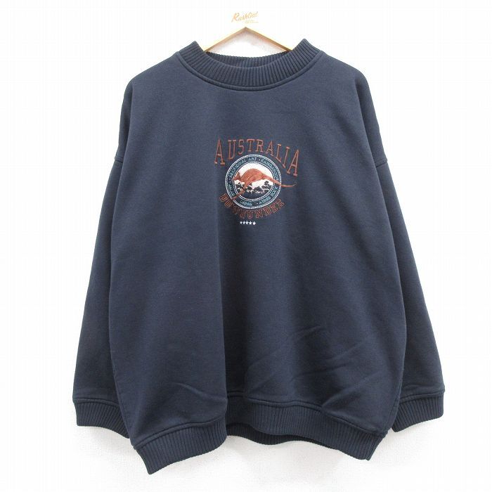 【商品名】 XL★古着 長袖 スウェット メンズ 90年代 90s オーストラリア カンガルー 刺繍 大きいサイズ クルーネック オーストラリア製 紺