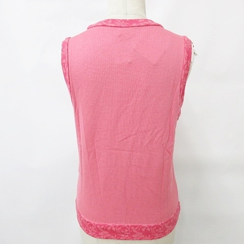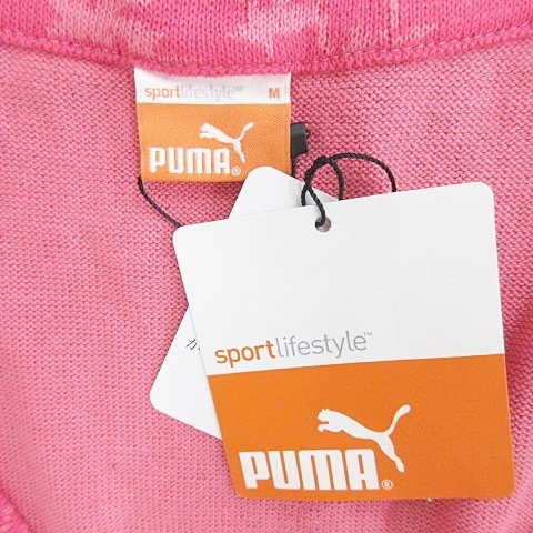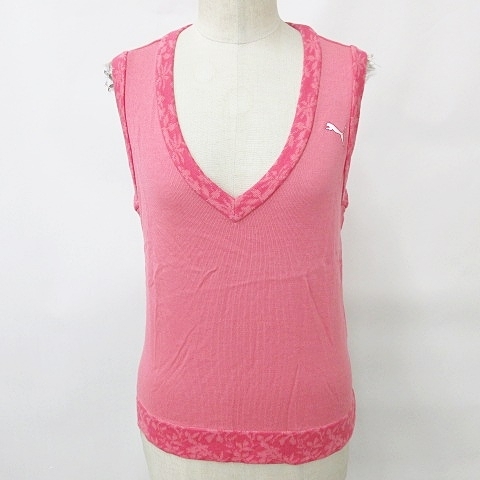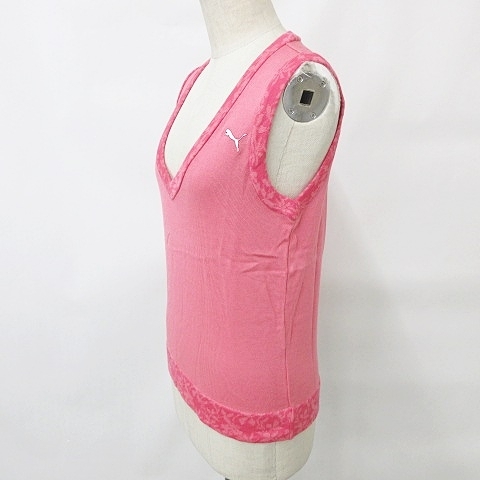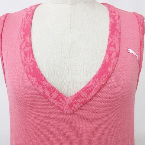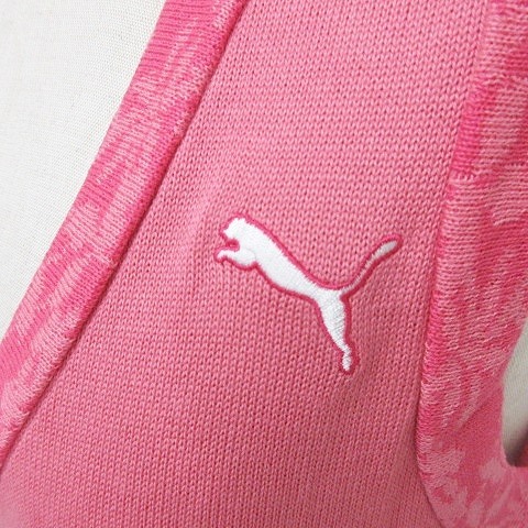 未使用品 プーマ PUMA ゴルフ ニット ベスト プルオーバー Vネック ロゴ 花柄 綿 コットン ピンク M レディース