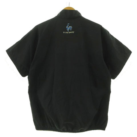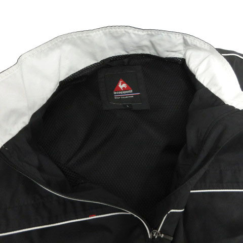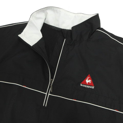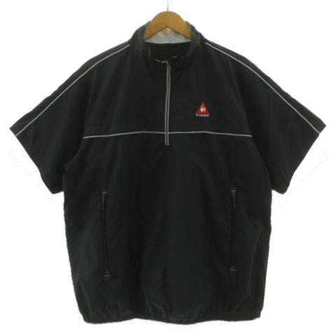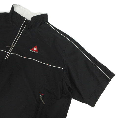 ルコックスポルティフ le coq sportif GOLF 半袖ハーフジップジャケット ウィンドブレーカー QG6621 ロゴ刺繍 裏地メッシュ 黒 白 L