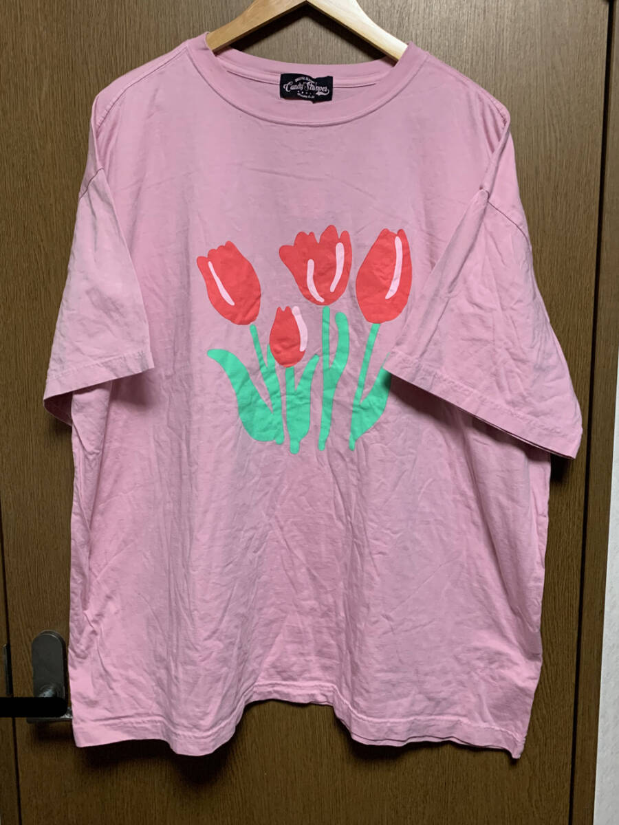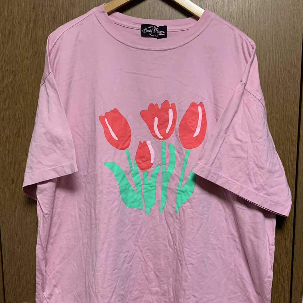 2【CANDY STRIPPER|半袖Tシャツ】キャンディストリッパー オフホワイト ビッグシルエット プリント クルーネック 未使用 フラワー