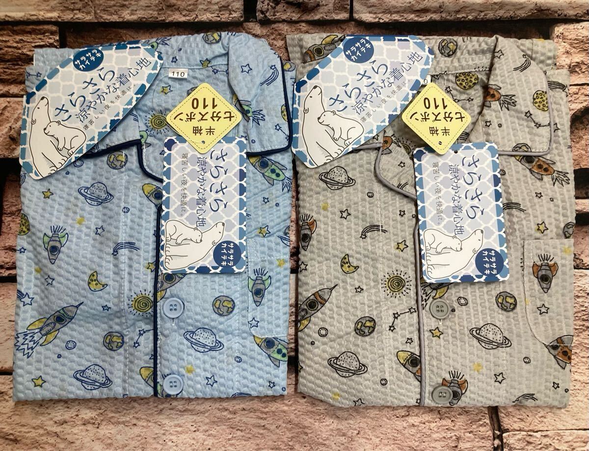 さらさら&涼やかな着心地で寝苦しい夜を快適に!リップル生地 ポケット付き半袖&長ズボン綿混 男児パジャマA(画像から)1組