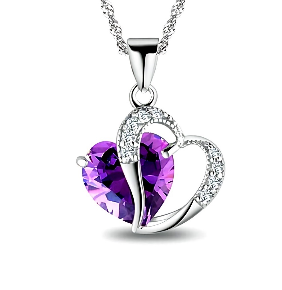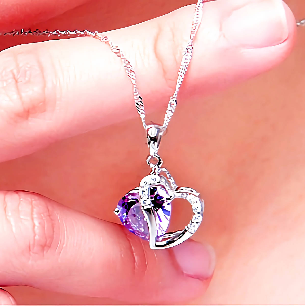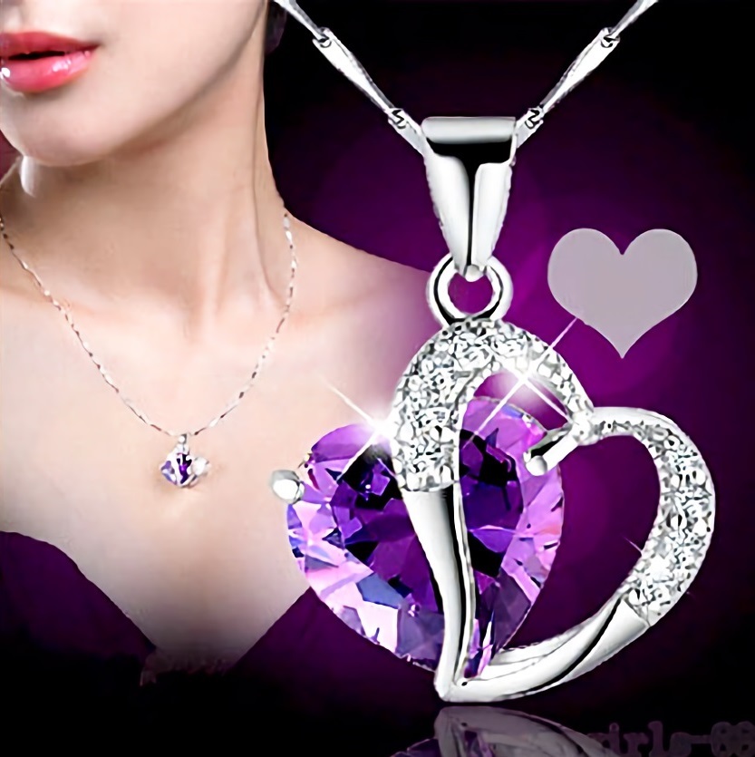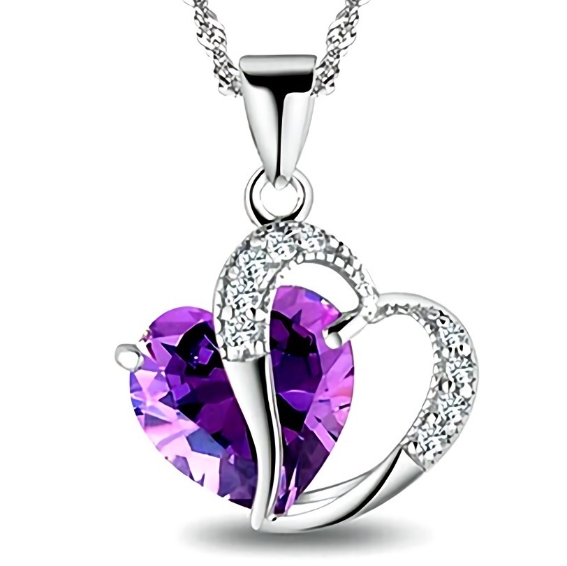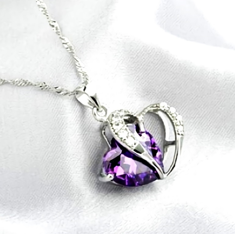 新品★送料無料★万華鏡 紫水晶アメジストハートダイヤプラチナ仕上925シルバーネックレス誕生日プレゼント旅行連休夏ギフト国内発送