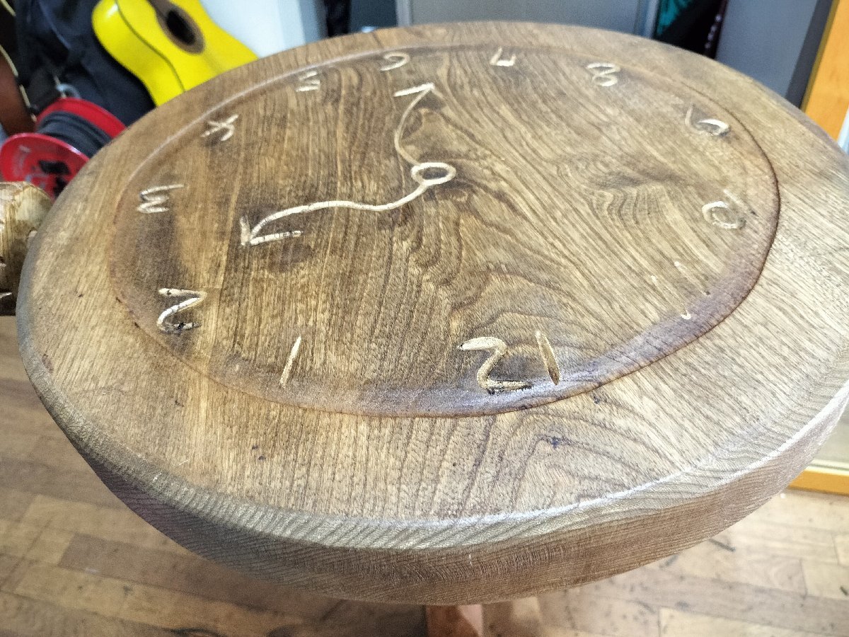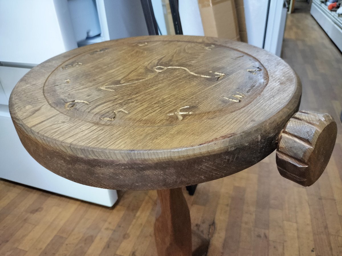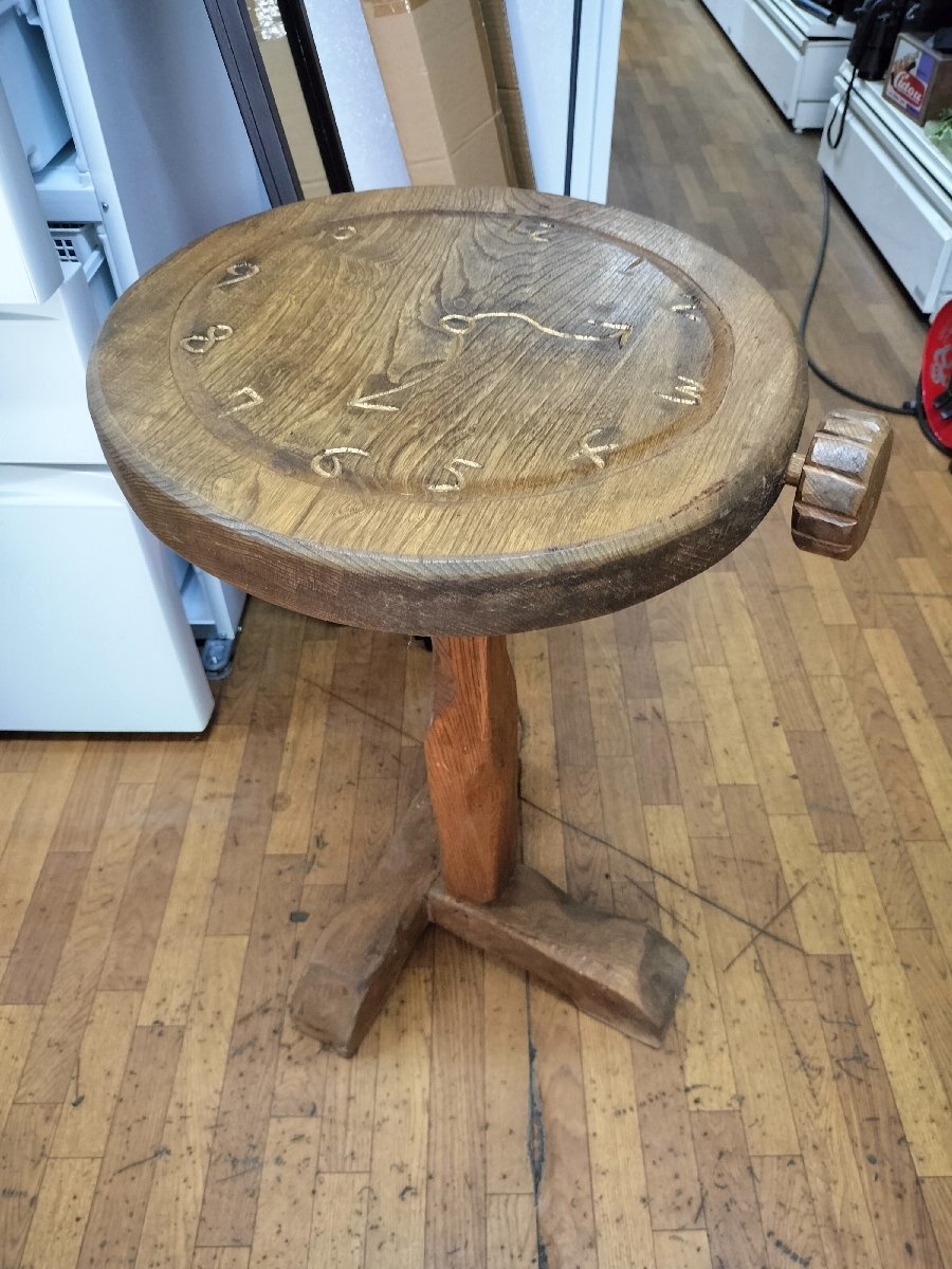 ★時計文字盤モチーフ サイドテーブル 飾り台 アンティーク 天然木 小樽より★