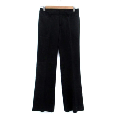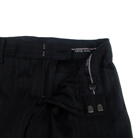 ミッシェルクラン MICHEL KLEIN フレアパンツ ロング丈 ストライプ柄 シルク混 38 M 黒 ブラック オフホワイト /HO32 レディース